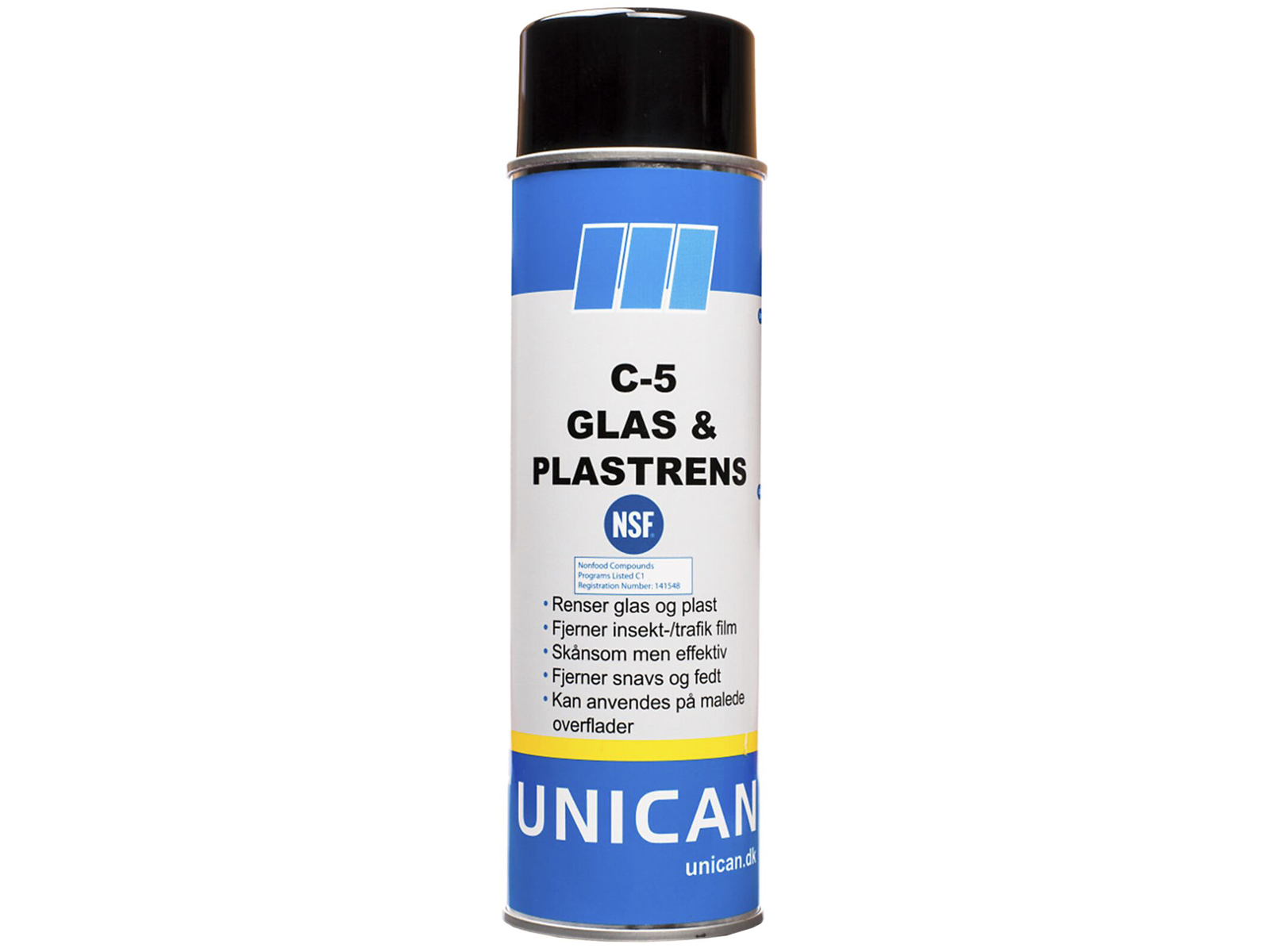 C-5 Glas og Plast rens er et effektivt, lugtsvagt og skånsomt rensemiddel til rengøring af glas, spejle, laminat, lakerede overflader, plastik mv. C-5 kan med stor succes bruges til rengøring af skærmkabinetter, plastik-vinduer og døre mv. C-5 efterlader en skinnende ren overflade og fjerner yderst effektivt trafikfilm samt insektrester fra frontruder. Ved brug på spejle og glas efterlader C-5 ingen striber. Ryst dåsen grundigt inden brug, påfør C-5 i en afstand af 15-20 cm, lad det sidde 30 sekunder, aftør derefter med en ren tør klud. Bemærk: Kan påvirke/fjerne anti-statiske/-reflex belægninger samt påvirke visse plexiglas typer.