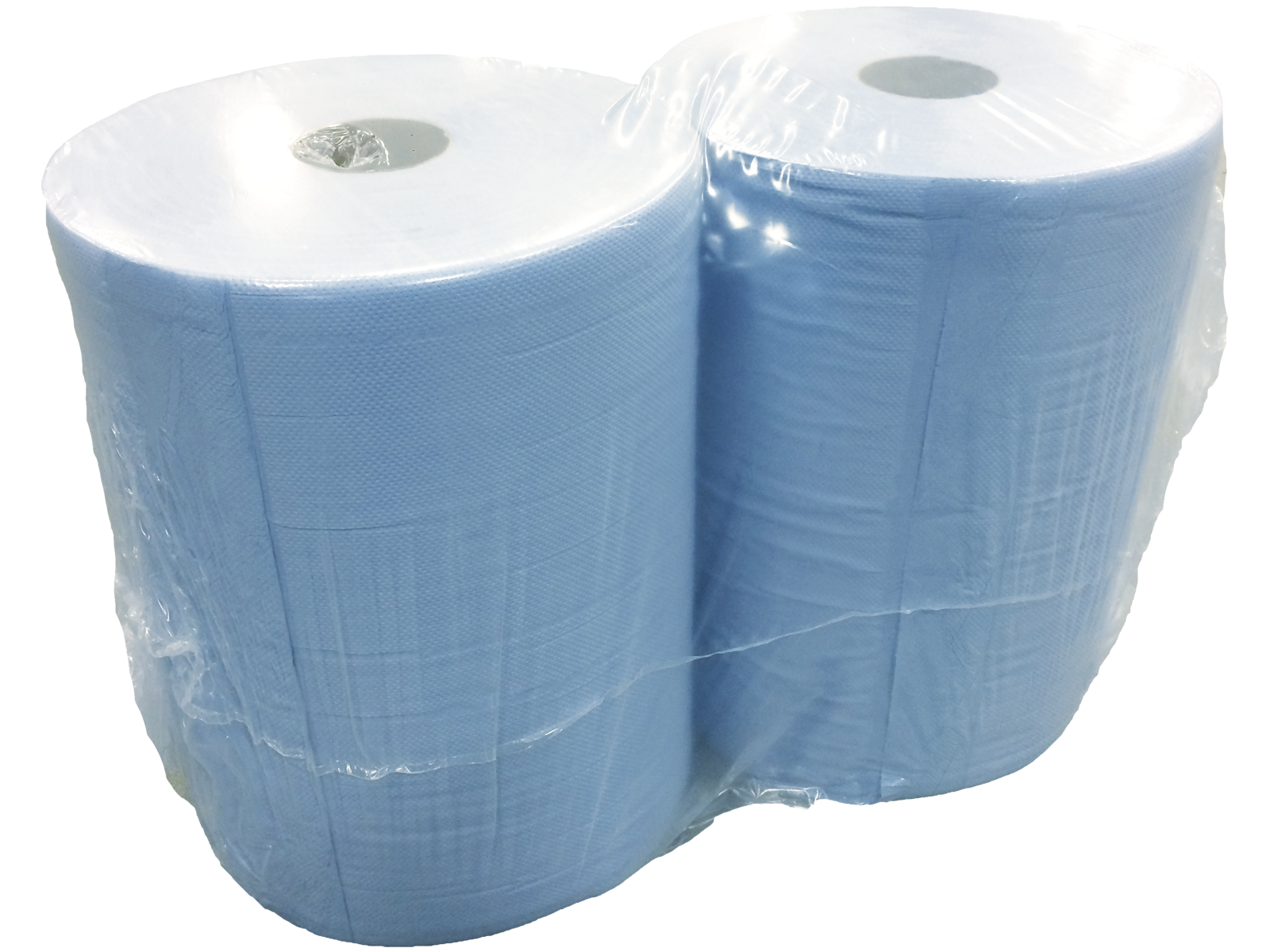2-lags blåt industripapir til aftørring. Fremstillet af genbrugsfiber. Mål 38 cm × 360 mtr. Svanemærket.