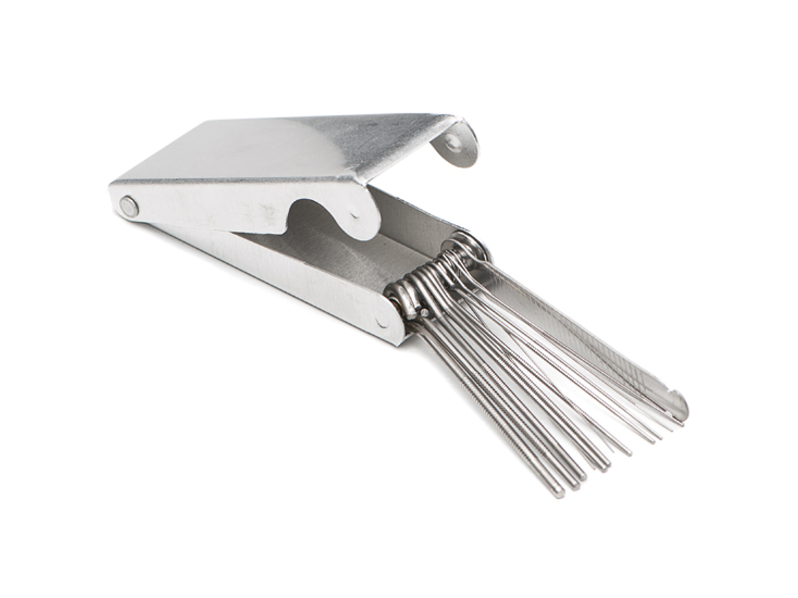 Riflede rensenåle til rensning af udløbskanaler i svejse- og skæremundstykker. Rensenålene leveres i en metalæske.0,5 - 2,3 Rensenål