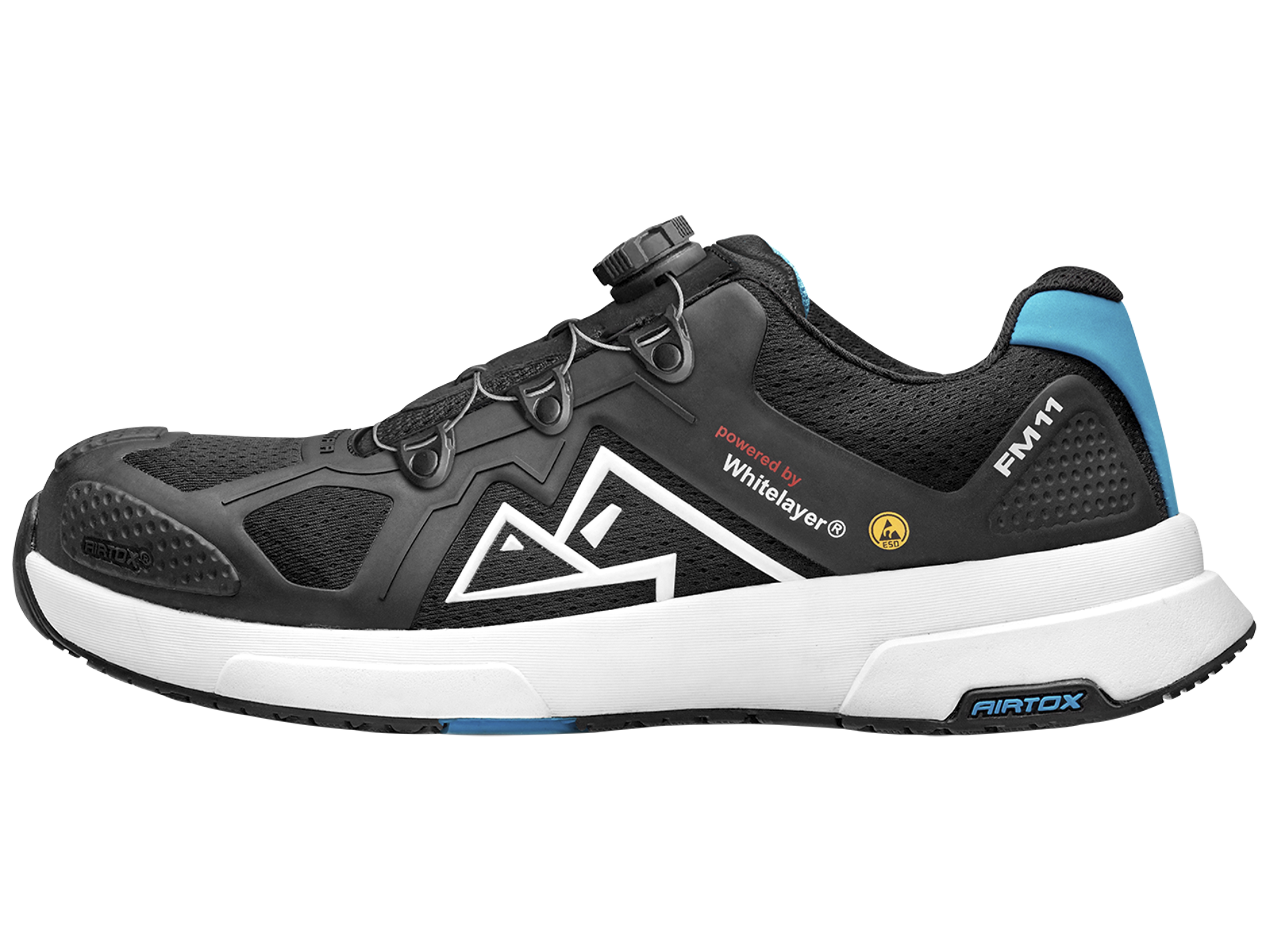 FM11 er en allround let og meget åndbar sikkerhedssko med drejelås. Modellen er udstyret med pro steel wire snørelukning og derudover med det ultra-lette Whitelayer sømværn. FM11 byder på ekstraordinær komfort og åndbarhed. Modellen er metal-fri og skridfast. Overdelen af skoene har PowerBreeze airflow system integreret, som effektivt øger luftcirkulationen i skoene. TPA-Plast letvægts-tåkappe. Bred skandinavisk pasform. EVA støddæmpende sål. Olie og syrebestandig ydersål. Varmebestandig NRT gummi-ydersål op til 300°C. ESD-godkendt. EN ISO 20345 S1-P SRC. Fås i flere størrelser.