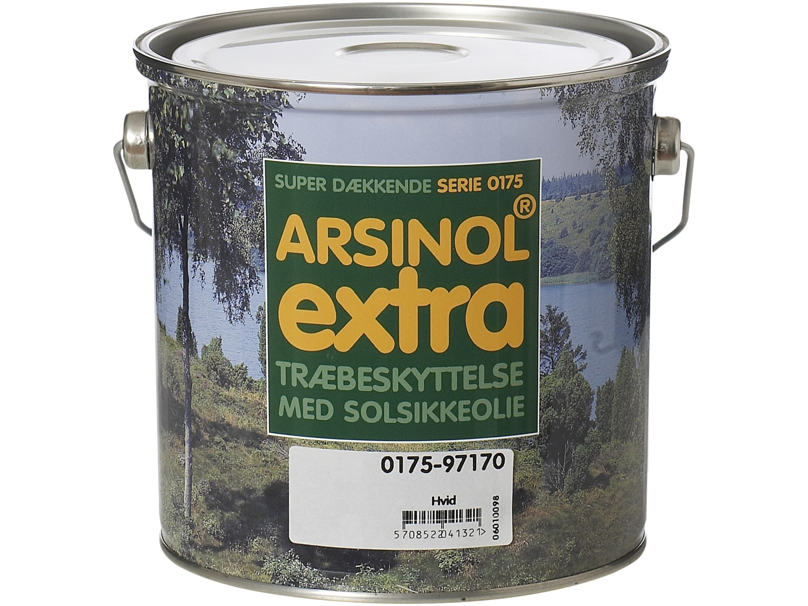 Arsinol® extra er en dækkende træbeskyttelse med ekstra højt tørstofindhold. Tørstoffet er dét, som bliver tilbage på træet, når træbeskyttelsen er tør. Traditionelle træbeskyttelser indeholder 30-45% tørstof. Arsinol® extra indeholder 75% tørstof. Man får herved mere beskyttelse af træværket ved brug af Arsinol® extra.