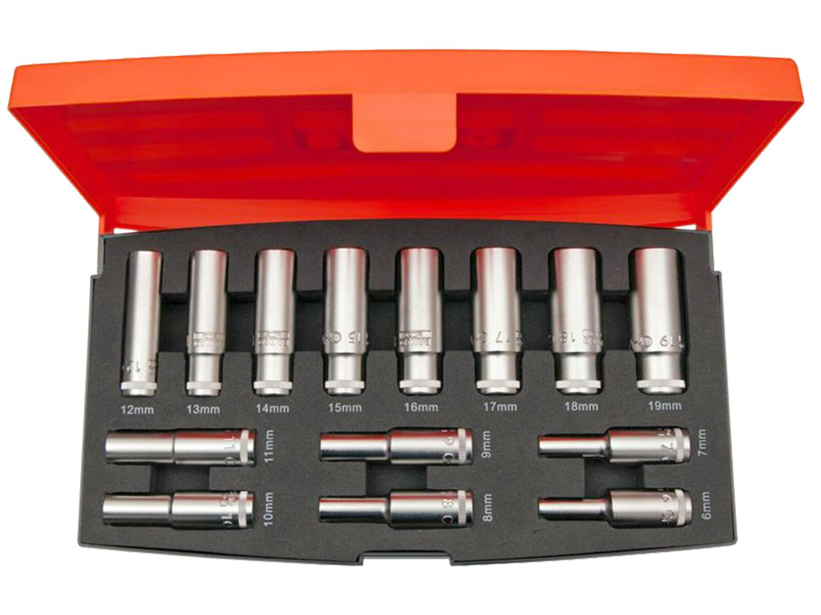 3/8” med 14 dele. Indeholder lange toppe 6-19 mm.