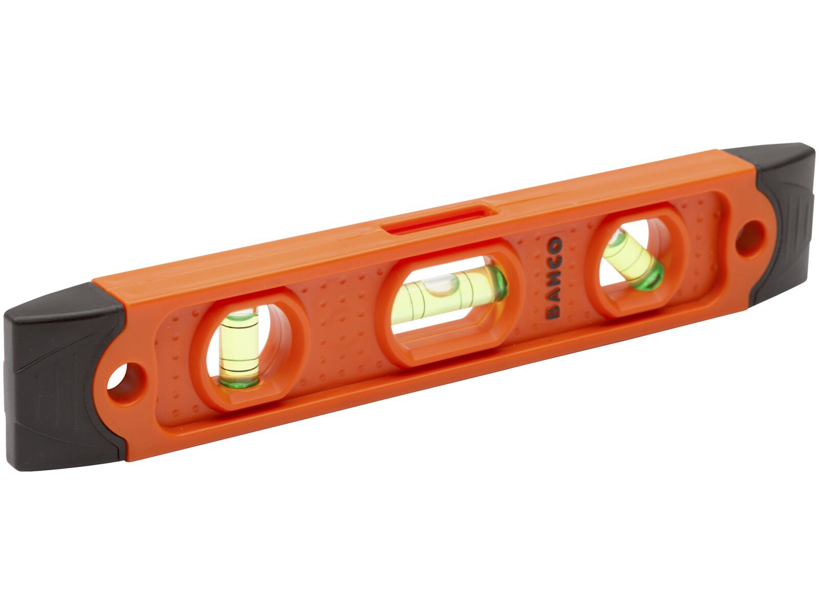 Bahco 225 torpedo-vaterpas. Tolerence på ±1,0 mm/mtr i normal position. Radie på libelle er 150 mm. Følsomhed på 13 mm/mtr.