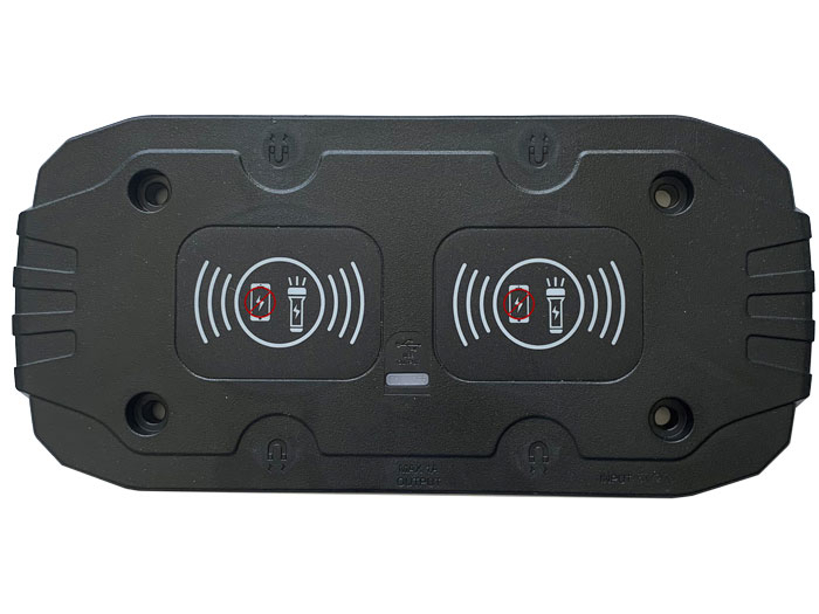 Laderplade for 2 Wireless lamper. Ladeplader er med kraftig magnet for montering på lift, i bil, på værkstedsvæge af metal. Der er også mulighed for montering med skruer på ikke magnetiske bagplader. Passer for lamper vare nr. 6542, 6546, USB stik og kabel vare nr. 6549.