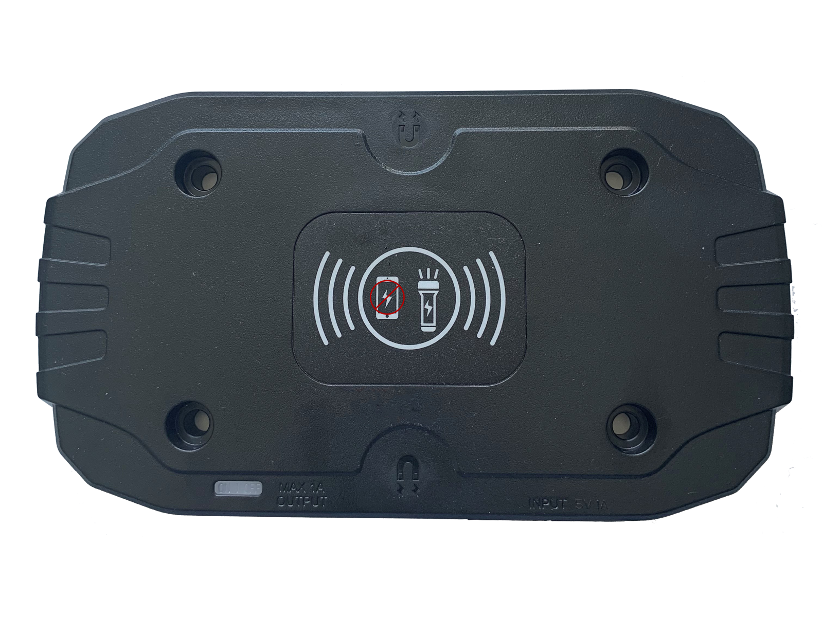 • Laderplade for 1 Wireless lamper. Ladeplader er med kraftig magnet for montering på lift, i bil, på værkstedsvæge af metal. Der er også mulighed for montering med skruer på ikke magnetiske bagplader. Passer for lamper vare nr. 6542, 6546, USB stik og kabel vare nr. 6549.