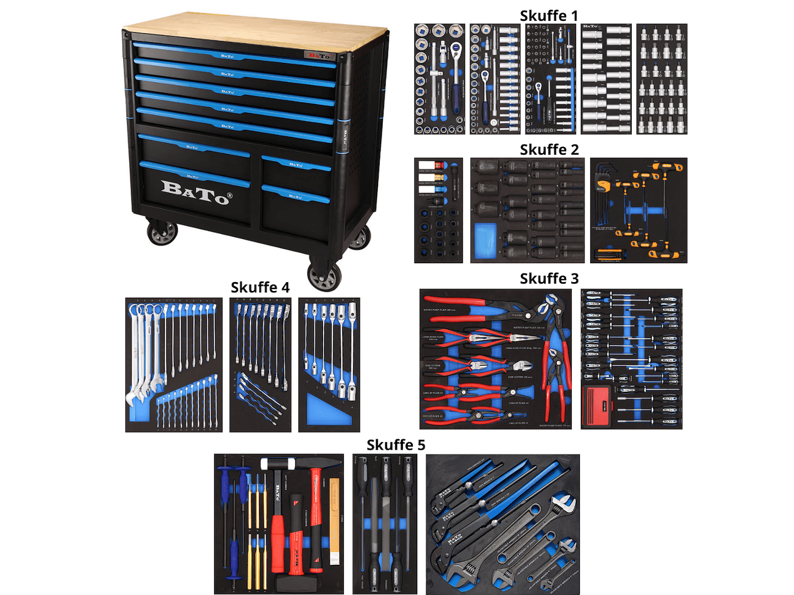 • BATO XXL-Premium er en robust og professionel værktøjsvogn (9157), designet til den krævende håndværker, mekaniker eller entusiast, der ønsker fuldt overblik, høj kvalitet og maksimal funktionalitet.