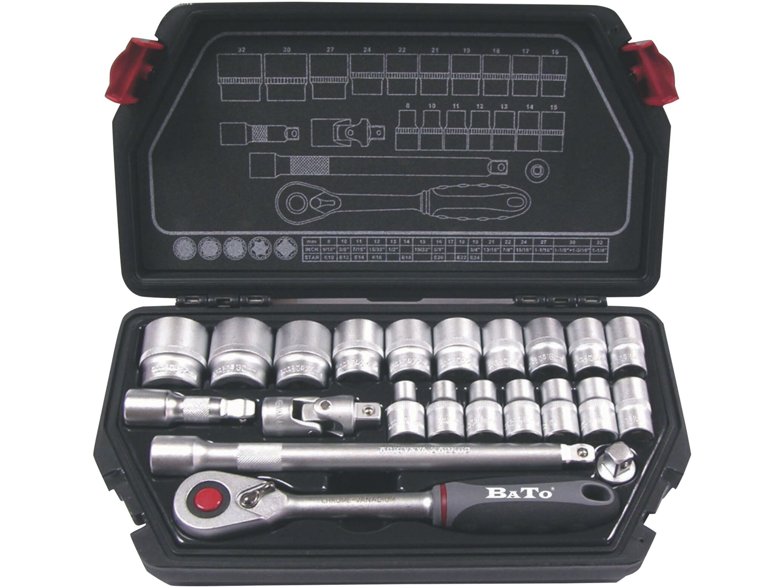 Topnøglesæt 1/2" 22 dele 8-32 mm Spline toppe