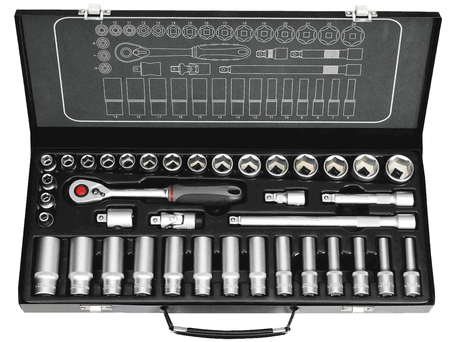 Topnøglesæt 3/8" 38 dele / B-S1212 Korte & Lange toppe 6-24 mm