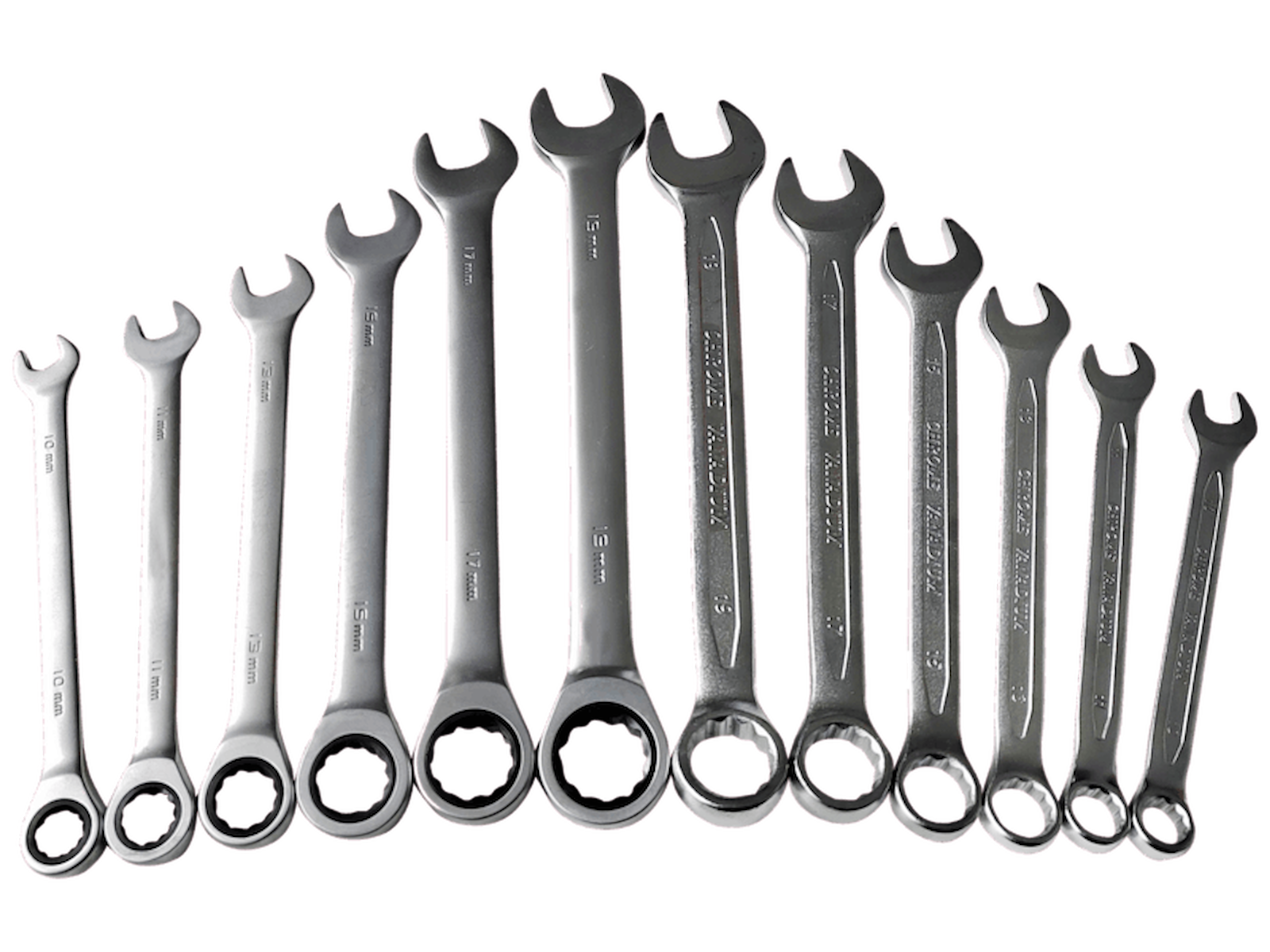 Ringgaffel-/skraldenøgle-kombisæt med 13 dele.