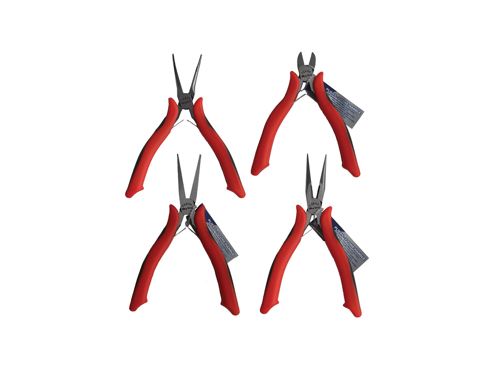 Sideafbider 125mm, Spidstang lige 150mm, Spidstang buet 150mm, Fladtang 150mm. Alle med fjederoplukning. SoftGreb.