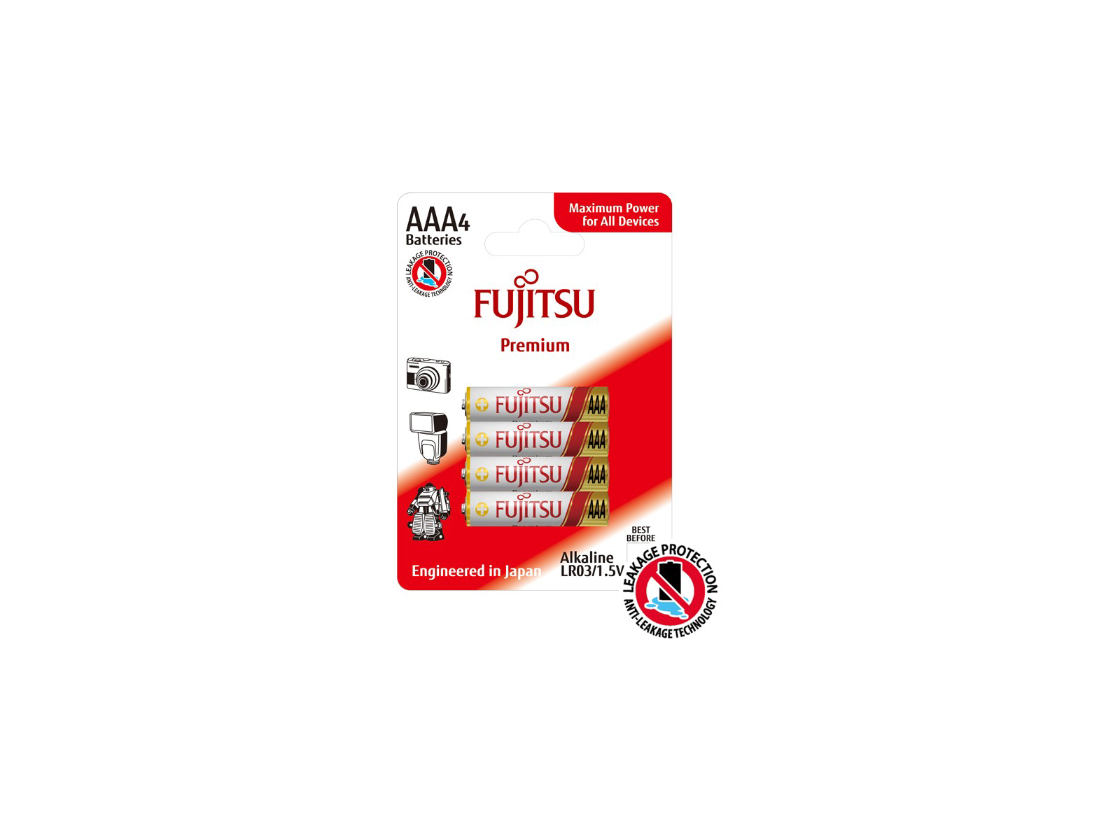 Fujitsus Premium Power Alkaline batterier har desuden en forbedret kapacitet, samt Fujitsus helt unikke anti-lækage teknologi,hvor det garanteres at de ikke lækker i op til 10 år.