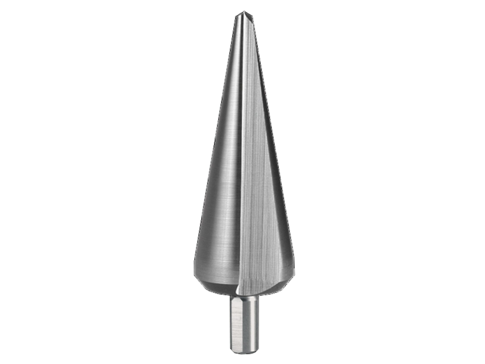 Pladebor HSS, CBN slebet med krydsslibning. Str. 2) 4,0-20,0 mm. Den dybslebet og snoet spånkanal giver et helt roligt løb og stor skærekapacitet. Konus for enden af pladeboret letter tilbagetrækning ved gennemboring af materialet. Ideel til stål, støbegods, NE- og letmetaller. Pladeboret kan centrere, forbore og udbore i en arbejdsgang. Ved anvendelse af skærespray, pasta eller andet kølemiddel kan værktøjets levetid forlænges betydeligt.