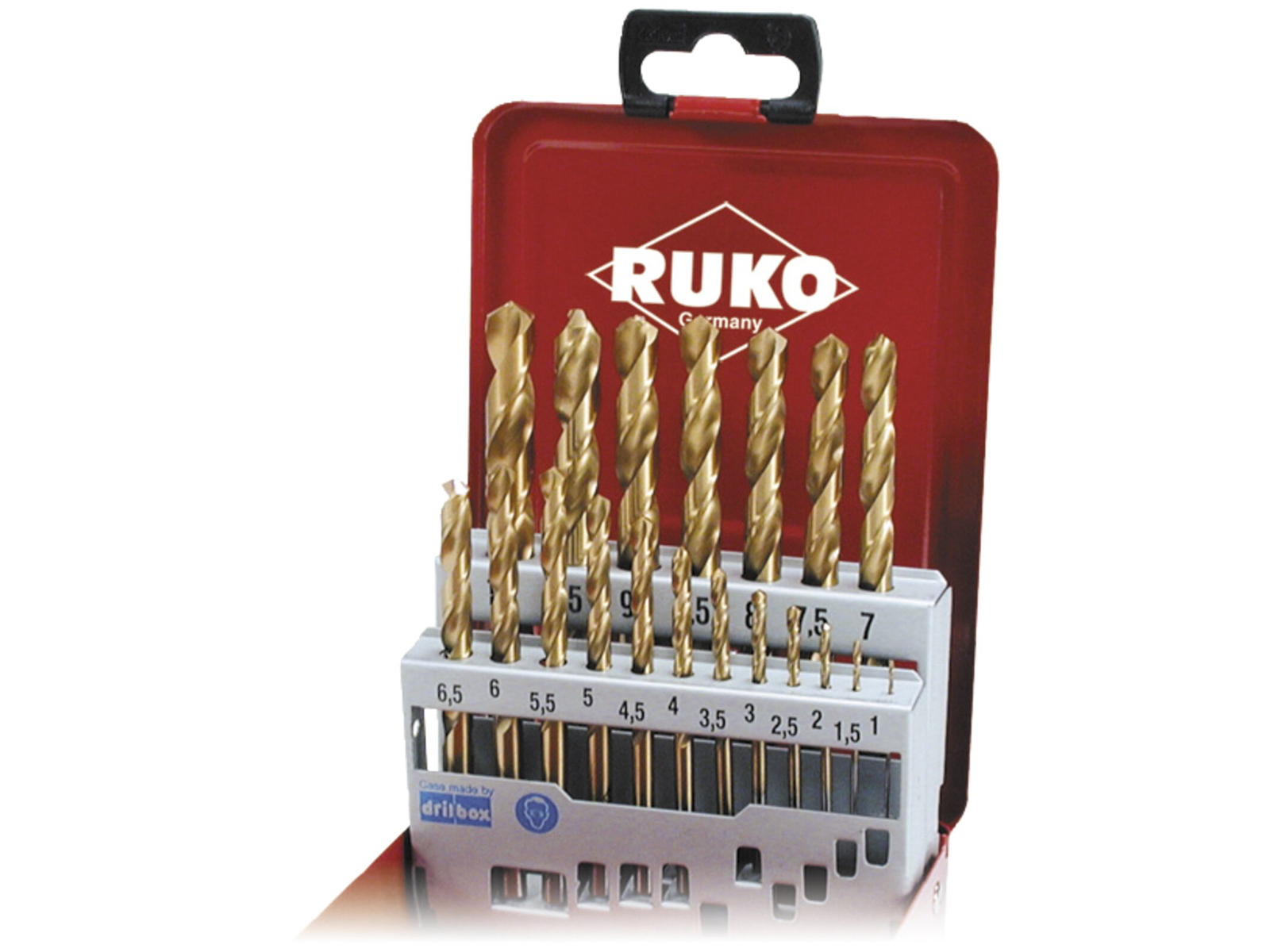 Borsæt DIN338 HSS Co5. 1-10×0,5 mm i stålkassette. Til boring i stål op til 1100 N/mm², rustfri- og syrebestandig stål, varm- og koldstål samt sejhærdnings- og indsætningsstål.