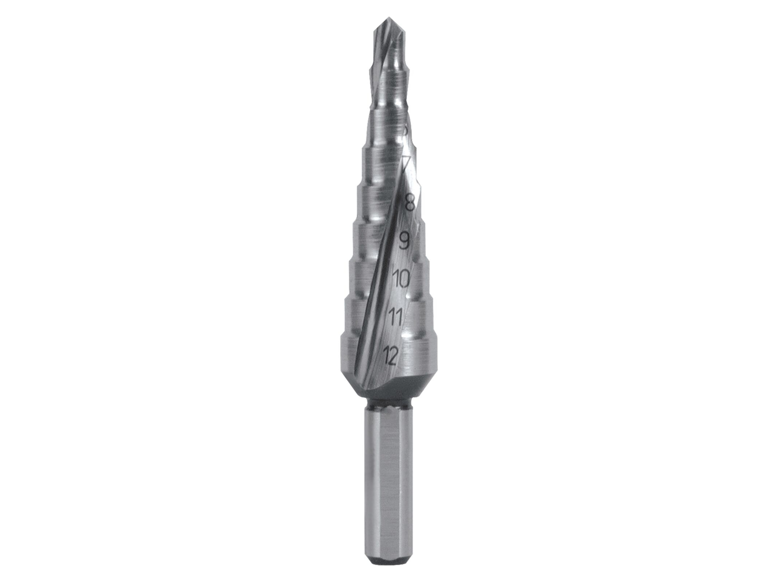 Trappebor HSS 4-12 mm. 4-5-6-7-8-9-10-11-12 mm. Den dybslebet og spiralsnoet spånkanal giver et helt roligt løb og samtidig en meget stor skærekapacitet. Især ikke brækkende spåner transporteres meget let væk, akkurat som på et spiralbor. Dette formindsker samtidig at affald og koldsvejsninger sætter sig på skæret. Konusen for enden af trinboret letter tilbagetrækningen ved gennemboring af pladen. Anvendes til stål, støbegods, NE- og letmetaller.