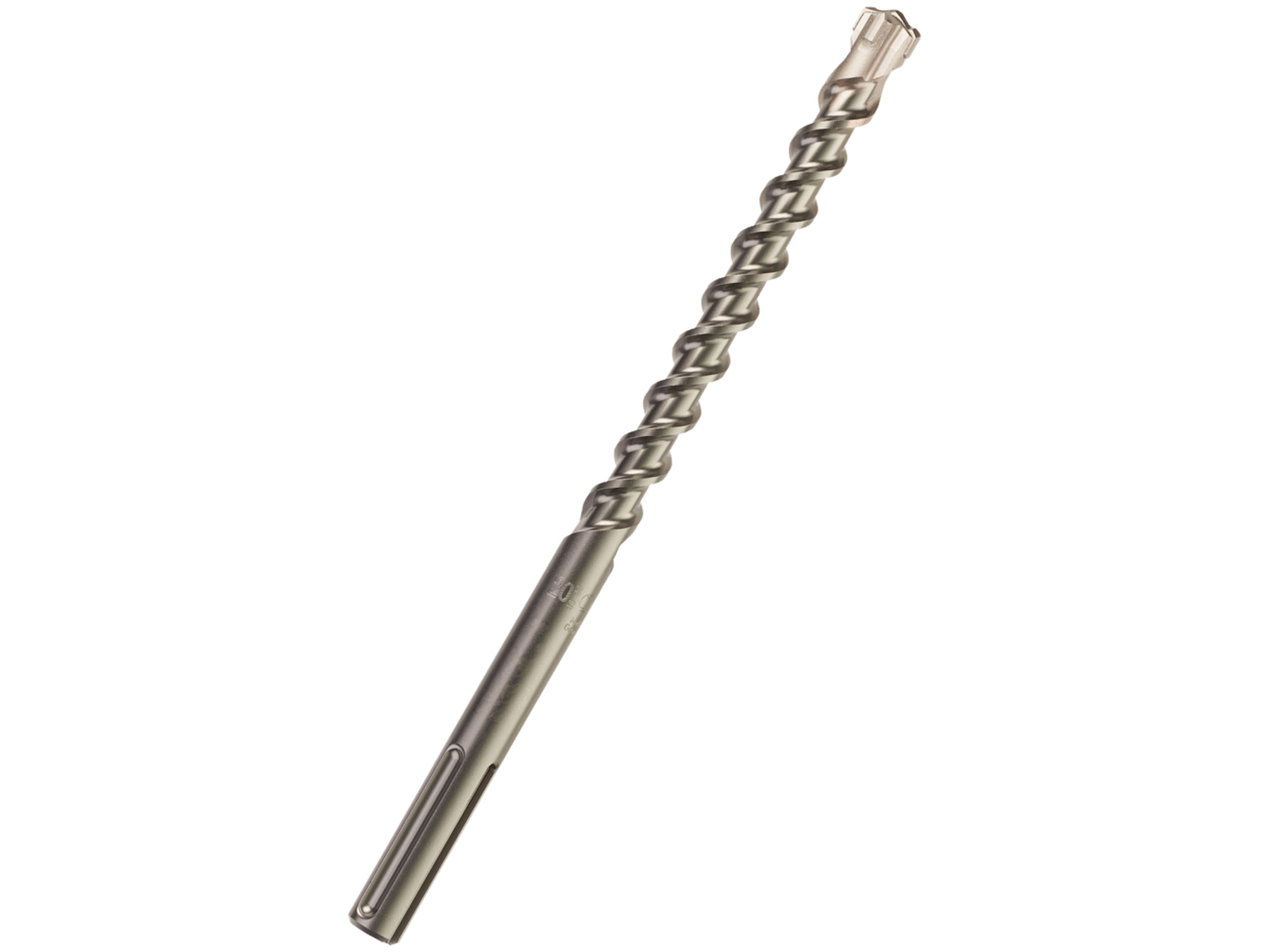 • SDS-max K-Hex bor med stor karbidspids med affasninger for armeringsjern og symmetrisk 4 skærs geometri (4×90°). Centreringspunkt med 130° vinkelspids giver optimal centrering og sikrer præcis styring under boring. Stort og robust sekundært skær med dynamisk og kurvet skærekant for optimal støtte til hovedskæret og hurtigere boring. Kortere spiralsnoninger sikrer hurtigere transport af borestøv fra spidsen til spiralen, hvilket betyder både mindre slitage og varmeudvikling ved borets spids. Slidmærker på begge sider af selve skæret. Så længe slidmærket er synligt, kan den nøjagtige diameter garanteres til fx forankring.
