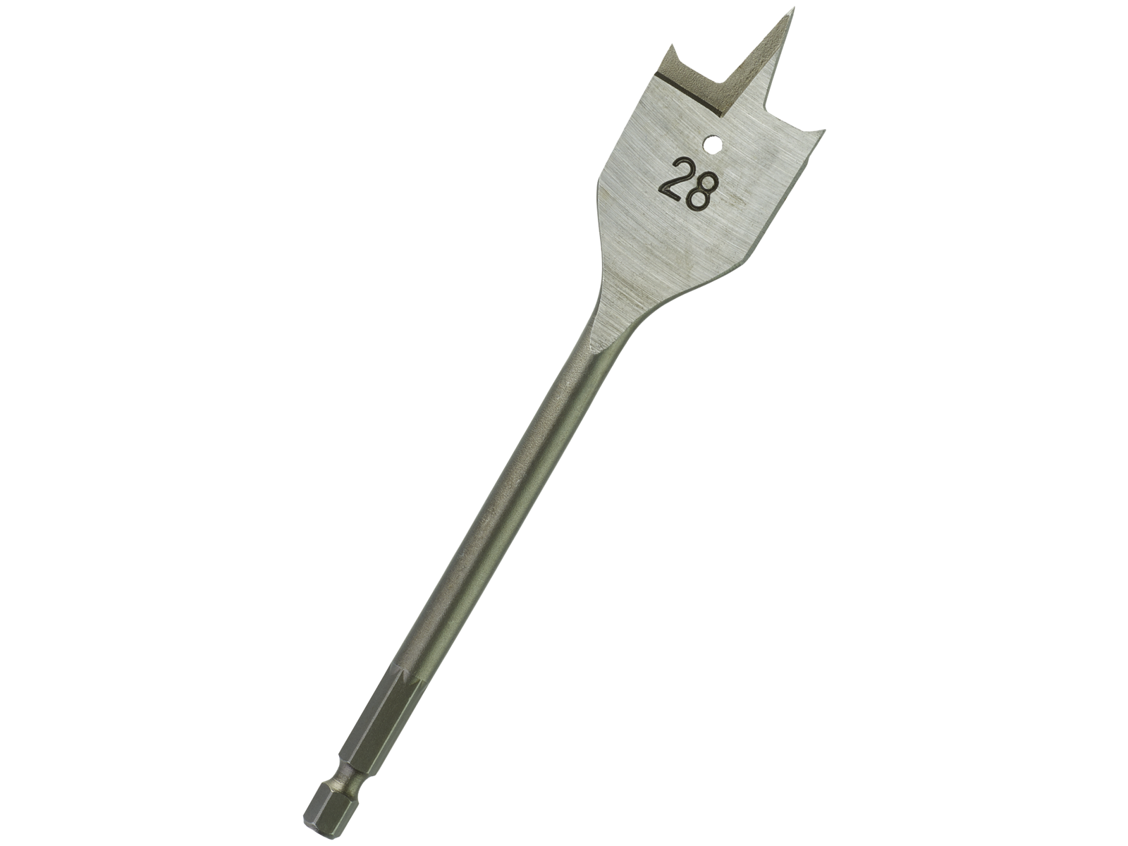 • Fladbor for hurtig boring af store diametre. Velegnet til boring i hårdt og blødt naturtræ samt spånplader. Perfekt til dørlåse, forsænkning samt elektriker- og blikkenslagerarbejde. 1/4" Hex skaft (DIN E 6.3) for direkte fastgørelse i elværktøjet og for sikkert patrongreb. Slebet midterpunkt for præcis placering af boret og skarpe vinger, for optimal skærekapacitet.