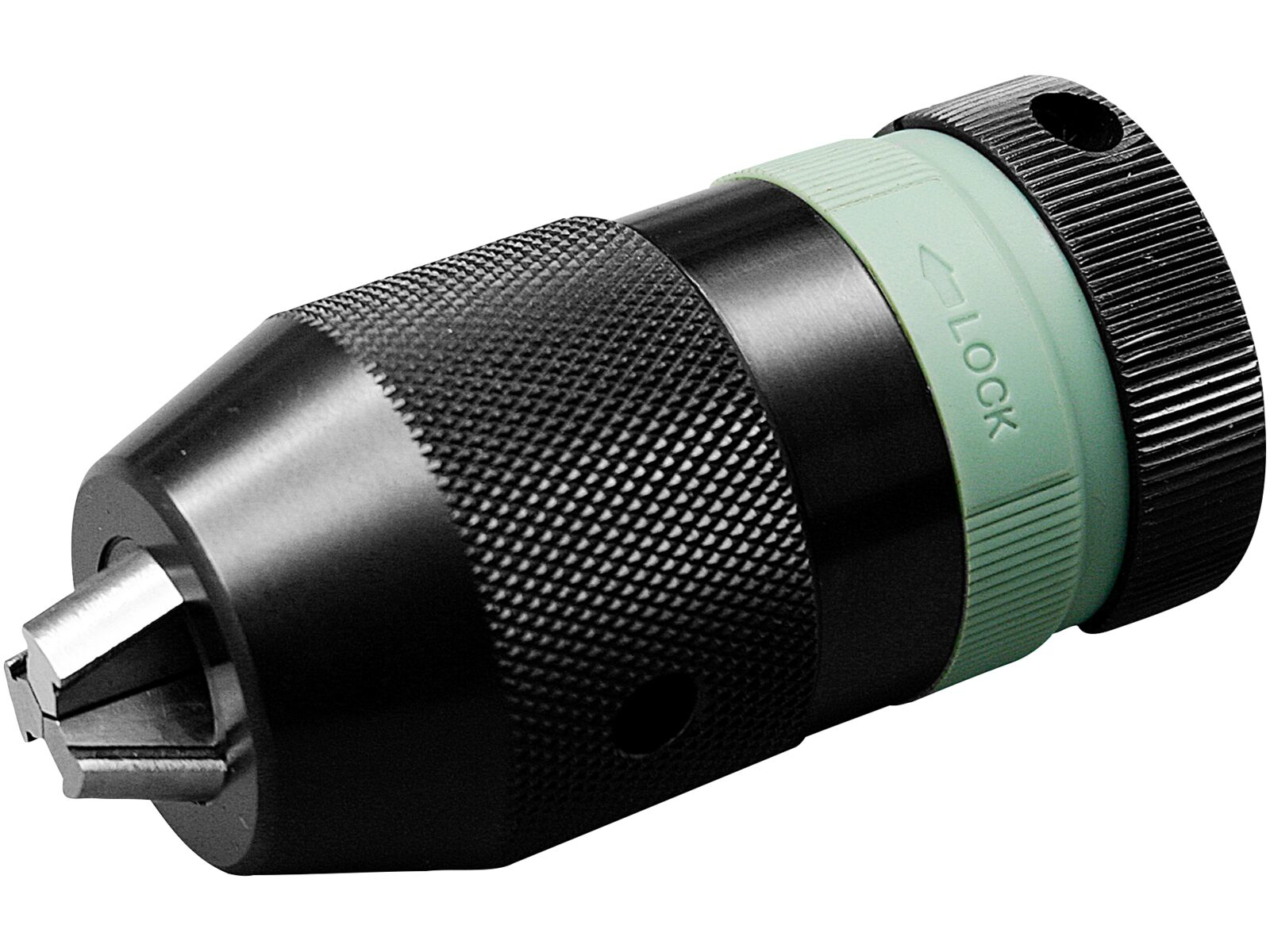 Borepatron 1-16 mm B18 m/lås, Selvspændende. Hurtigspændende præcisions borepatron med spændekraftsikring / lås. Højre-venstre løb, konisk hul efter DIN 238. Spændeområde: 1 -16 mm. Borring: B18. L: 115 mm. I: 101 mm. D: 51 mm.