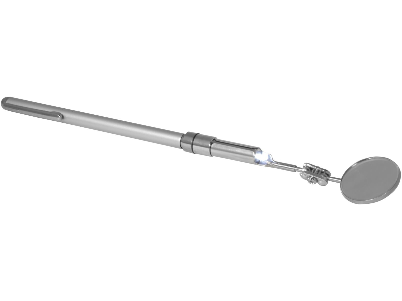 LED lys, inspektionsspejl Ø30 mm, med teleskopstang (L=665 mm). Spejl størrelse:Ø30 mm.