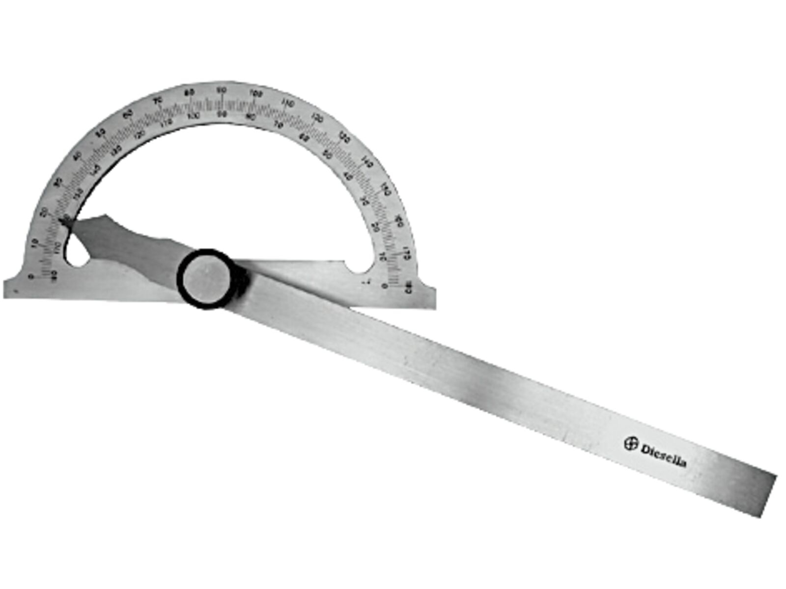 Med matforkromet dobbelt skala, måleområde 0-180°, matforkromet skala med laser print.