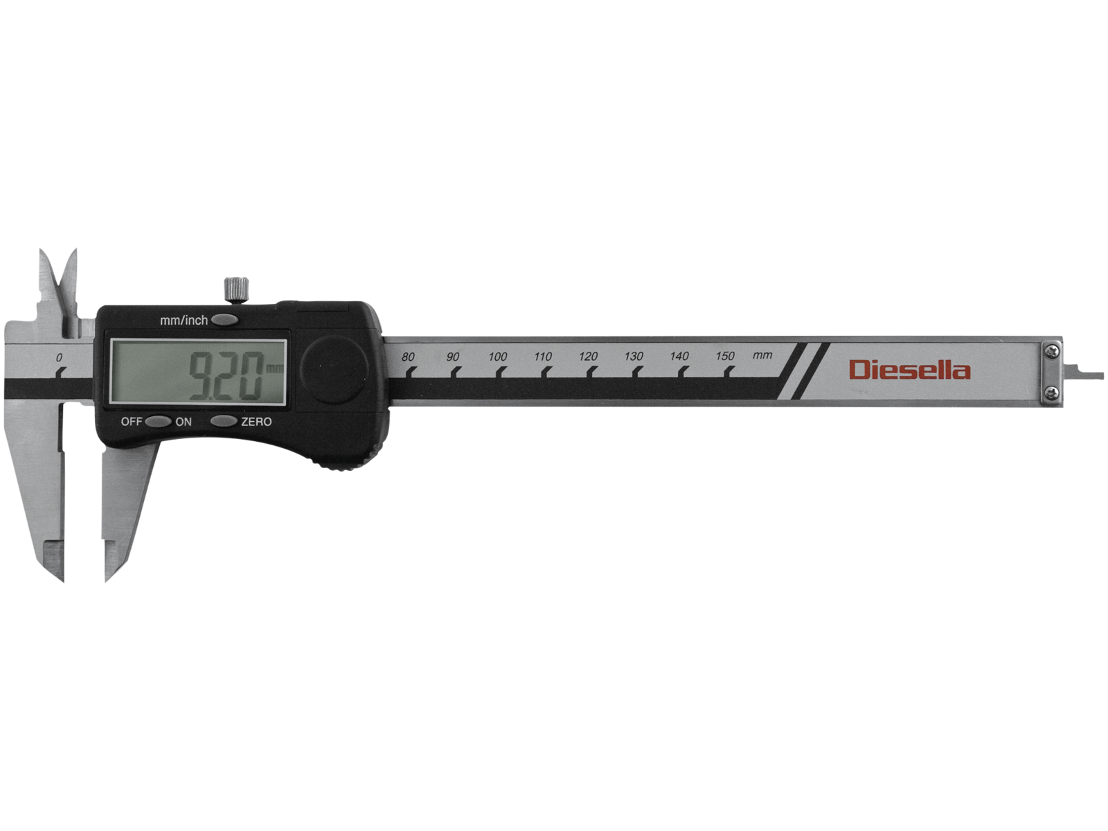 • Digital-skydelære med mange funktioner. Skydelæren har fladt dybdemål, manuel on/off-funktion, nulstilling og omstilling fra millimeter til tommer. Monoblock model, som forlænger skydelærens levetid. 0,01 mm aflæsning. Udført i rustfri stål. Leveres inkl. 1× LR44 batteri i robust plastkasse til opbevaring. 1,55 V SR44W batteri kan også benyttes. Fås i flere varianter.