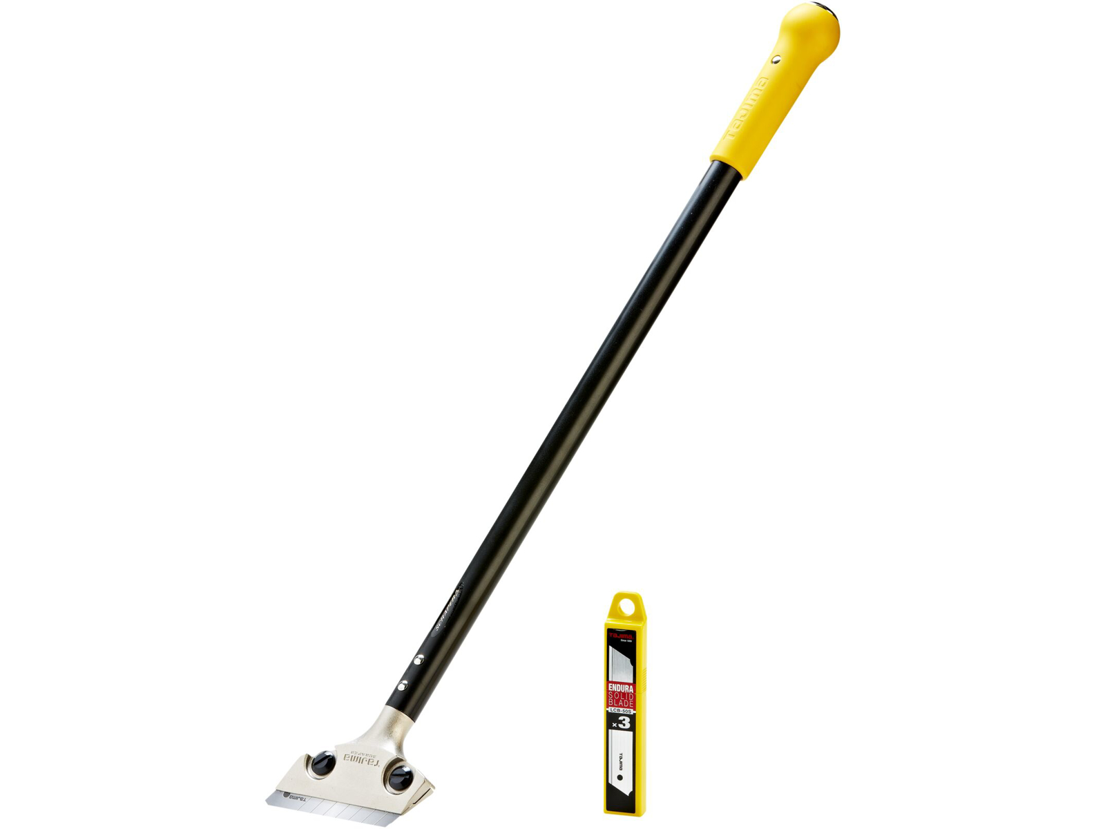 Tajima tapetskraber med 600 mm skaft. Inkl. 3 ekstra klinger. Slagfast, gennemgående håndtag med softgrip. 18 mm knivblad passer som klinge.
