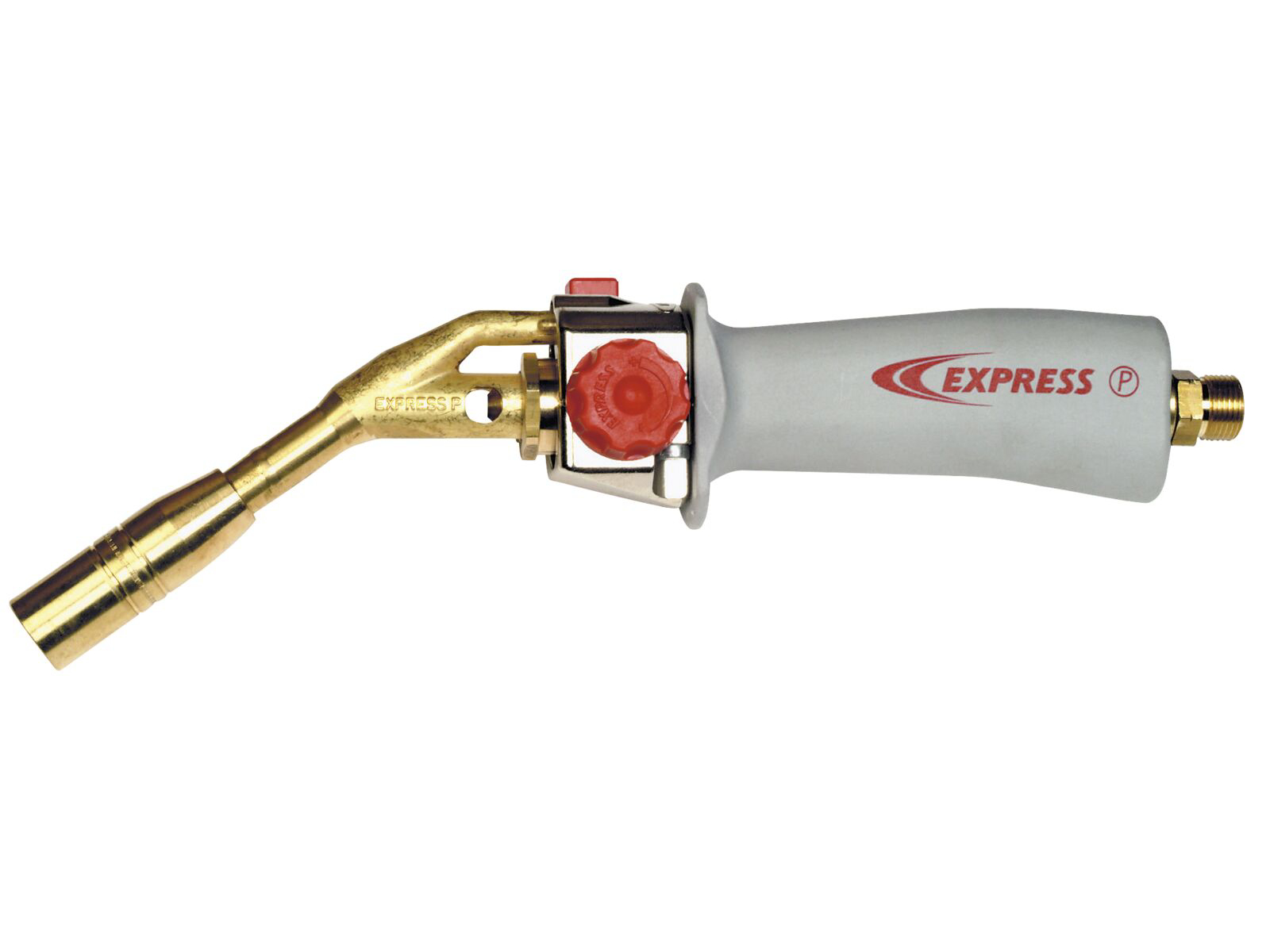 Express gasbrænder med håndtag/piezotænding til slange-montering. 18 mm. Leveres med fiskehovedbrænder.