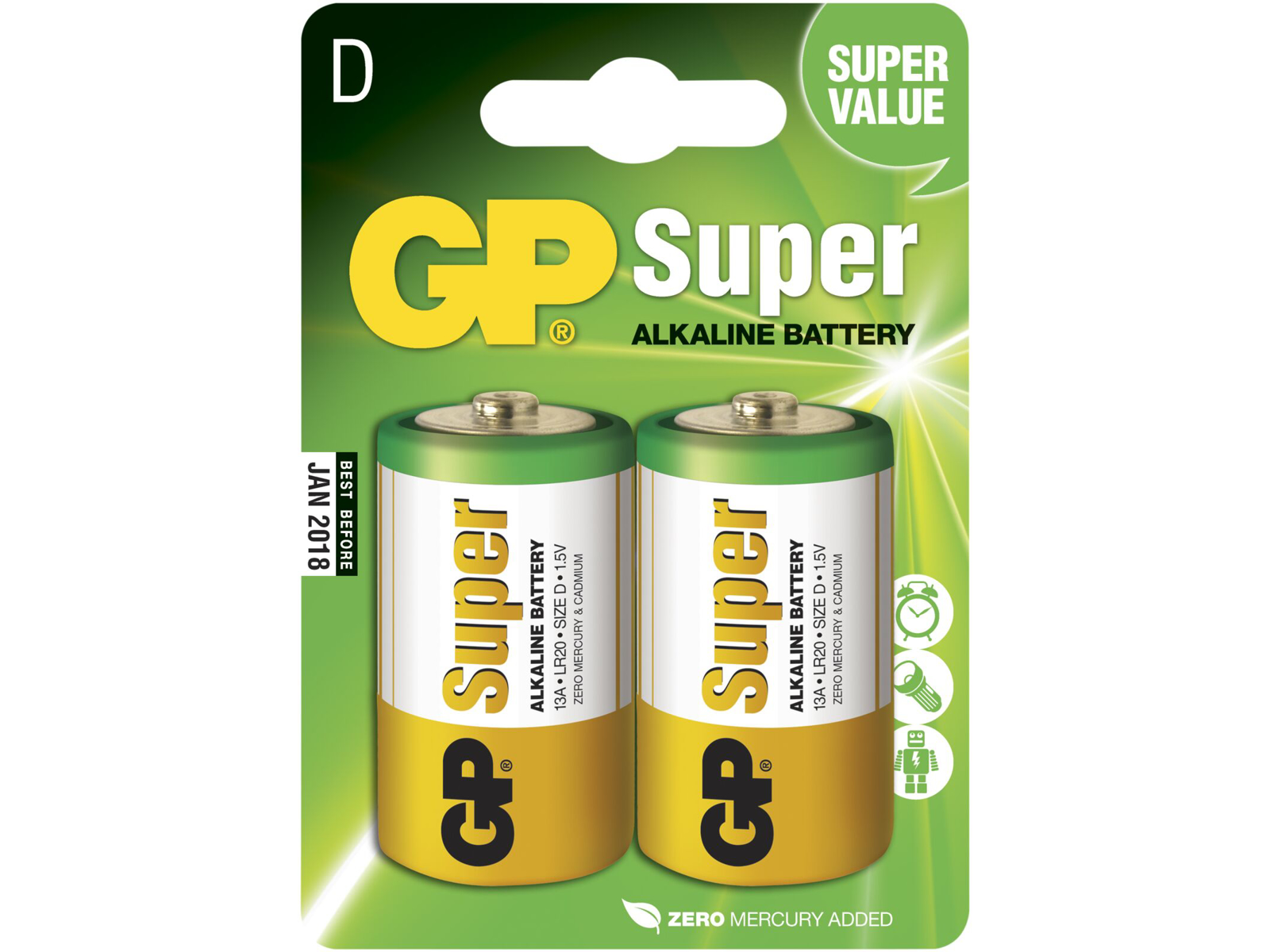 GP Super Alkaline LR20/D 1,5V. Blisterkort med 2 batterier