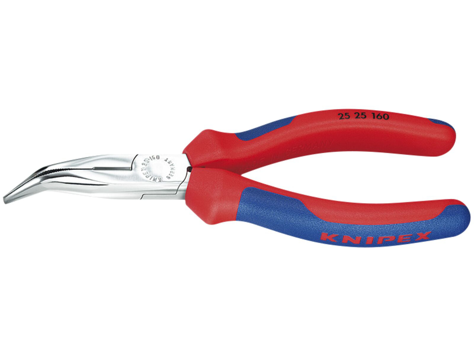 Fladrundtang med skær (Radiotang) forkromet med flerkomponent-håndtag 160 mm. Velegnet til gribe- og skærearbejder. Spidse, flad-runde kæber. Fortandede gribeflader. Med skær til blød, mellemhård og hård tråd. Skær yderligere induktivt hærdede, skærhårdhed ca. 61 HRC. Vanadium- elektrostål- smedet, oliehærdet.