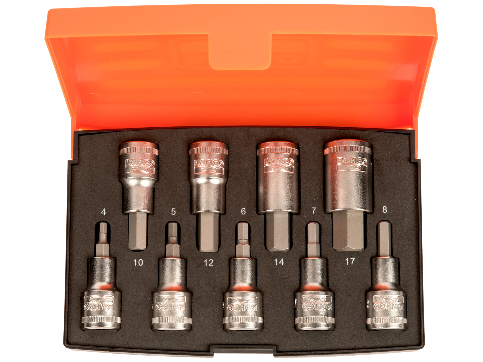 • Inhex-topsæt med indvendig sekskant 1/2" 4kt. Sættet indeholder 9 stk 1/2" toppe med sekskantbits i størrelserne 4, 5, 6, 7, 8, 10, 12, 14, 17 mm. Højtlegeret stål med mat finish. Standard: ISO 1174 samt DIN 3120. Leveres i ABS plastkasse.