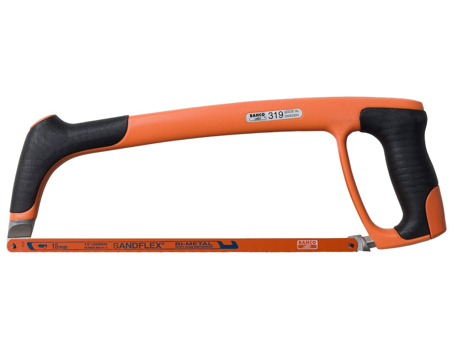 Professionel og unik nedstrygerbue med let, men stærk stålprofil. Komfortabelt gummibeklædt håndtag med tommelfingerplacering, som sikrer et solidt greb. Høj klingespænding på 100 kg, som giver præcise og lige snit. Klingen kan opspændes i en vinkel på 55°. Opspændingsmekanisme integreret i håndtaget. Leveres med Sandflex 3906 Bi-metalklinge med 24 tænder pr. tomme.