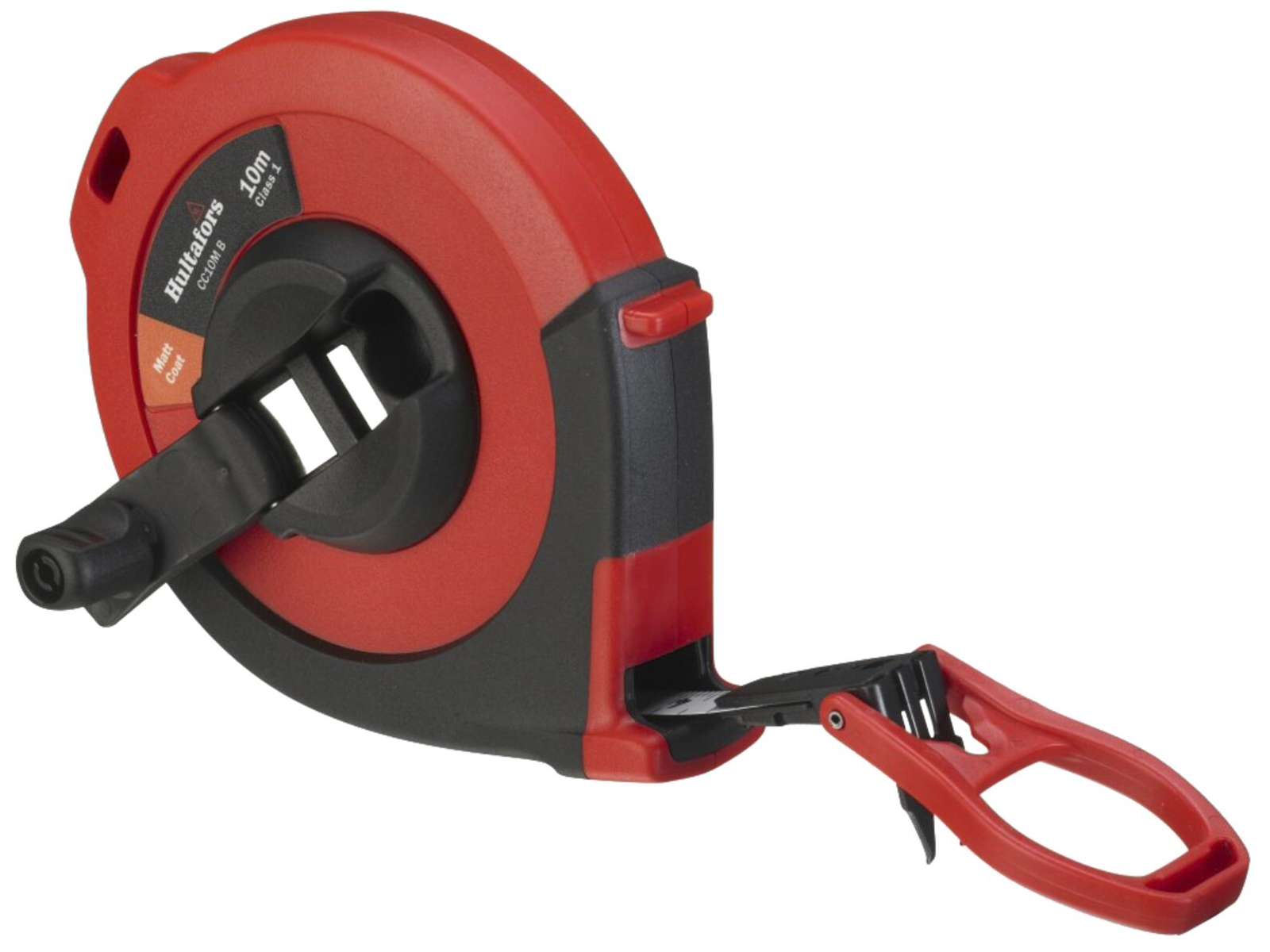 Langt båndmål i stål med unikt ethåndsgreb for optimal håndtering. Hvidt, robust stålbåndmål, gradering med meget nøjagtig blækstråleteknik og beskyttet med ekstra polyesterlak. Slagfast kapsel i ABS plast med hul til montering af sikkerhedsline. Endebeslag med unik funktion og båndbegyndelse type B. Stålbåndet kan bøjes let, men bør ikke bukkes. Graderingen er beskyttet af mat polyesterlak, som også er refleksdæmpende. Båndet er rustbeskyttet og tåler kontakt med fugt og de fleste opløsningsmidler. Båndmål CC med medium kapsel har hurtig gearfunktion 3:1.