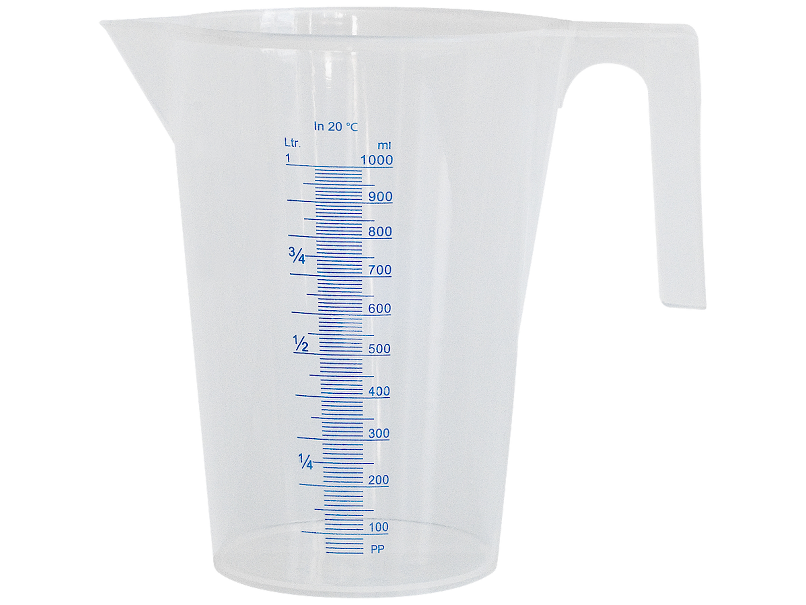 • Litermål i PP-plast med ml-deling og hank. Kan anvendes til olie, vand, frostvæske, sprinklervæske, PH-neutrale væsker, diesel og petroleum. Er godkendt til fødevarer. Alle modeller er stabelbare.