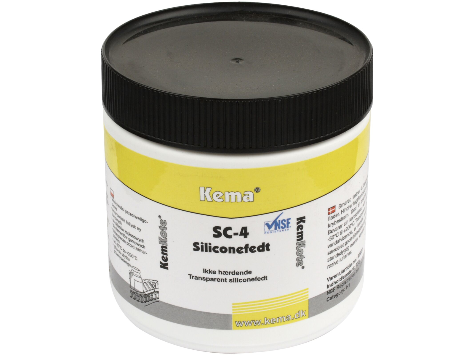 SC-4 Siliconefedt er en fedtligende siliconepasta med særdeles gode dielektriske egenskaber. Har en ensartet konsistens indenfor et bredt temperaturområde -50°C til +200°C. Lys transparent fedt der er smags og luftfri, krakelerer og størkner ikke ved ældning. Vægttab som følge af fordampning er mindre end 2% efter 24 timer ved 200°C. Klæber til tørre overflader af metal, keramik, gummi, PVC og alle former for elektriske isolationsmaterialer og har stor overflademodstand, selv under meget fugtige forhold, har fremragende modstandsevne overfor krybestrøm og corona. SC-4 har en særlig evne til at indkapsle støv, snavs og lignende, således at overfladen altid er vandafvisende og derfor velegnet til udendørs brug på f.eks. højspændingsisolatorer. Kemisk inaktiv, derfor velegnet til at beskytte og bevare fleksibiliteten hos natur- og syntetisk gummi, PVC m.m. Tætningslister af gummi kan således ikke oxydere eller fryse fast. Beskytter metaloverflader mod korrosion og har utallige anvendelsesmuligheder og anvendes i dag på de mindste elektroniske enheder til de største isolatorer. SC-4 kan anvendes inden for alle industrier. Egenskaber: -50°C til +200°C. Smører og tætner. Hindrer fugt. Beskytter mod korrosion. Transparent. Anvendelse elektronik/teknik/tele: Til kabelafslutning, tætningsmuffer, varmelegemer, isolatorer, klembrætter, klemkasser, stik og tilslutninger, spolekærner, coaxiale forbindelsesled, antenner, gevind og fittings. Anvendelse transport: Til tændrør, strømfordelerdæksel, højspændingskabler, batterier og batteriklemmer, gummitætningslister, pakninger, slangestudser, el-tilslutninger, frit siddende stik og kontakter.