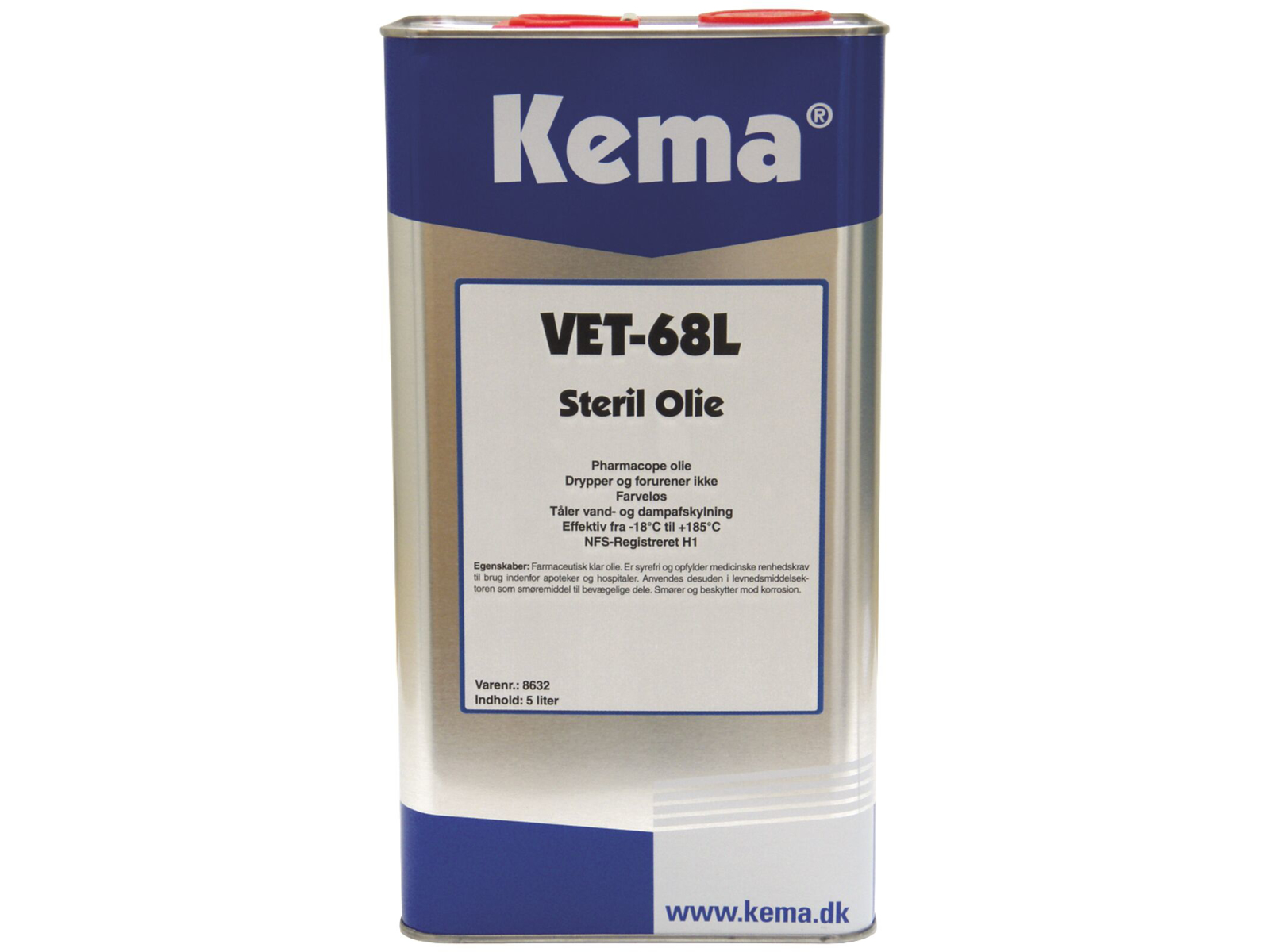 VET-68 er en speciel raffineret syrefri hvid olie, der opfylder de medicinske renhedskrav til brug indenfor fødevarevirksomheder, hospitaler og apoteker.