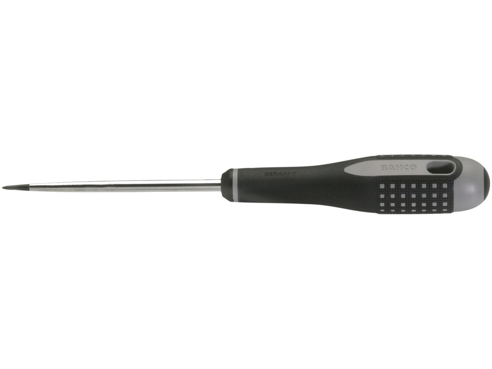 Udviklet i henhold til Bahcos ERGO™ program. Syl. Ergonomisk 3-komponent skaft, med yderstruktur som sikrer et meget højt vridmoment. Permanent farvekode i begge ender af skaftet for hurtig identifikation af type. Højtlegeret stål, forkromet og finpoleret klinge, total hærdet, spids sort oxideret.
