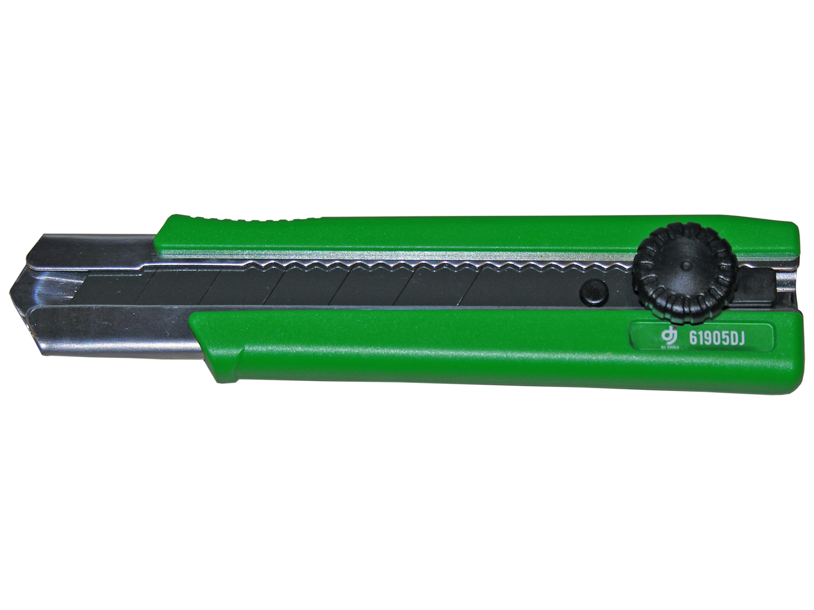 DJ Tools bræk-af kniv med skruelås. Kniven leveres med ultraskarp sort klinge. Fås i enten 18 eller 25 mm.