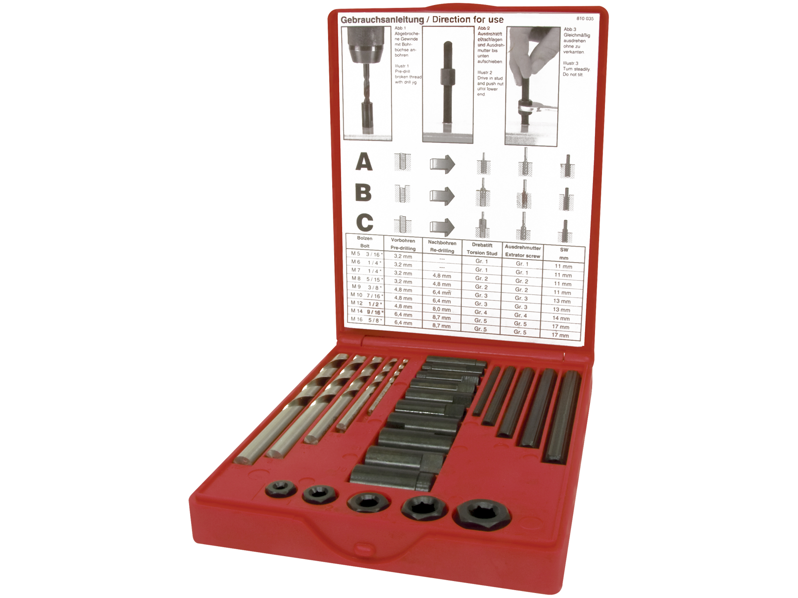 Skrueuddrejersæt (M5-M16) med 25 dele. Leveres i praktisk plastæske.