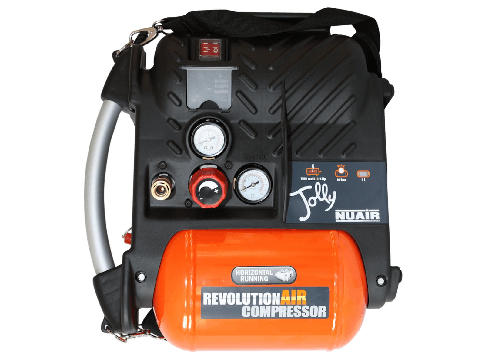 Meget handy og kompakt og bærbar oliefri kompressor med skulderrem og bærehåndtag. Til mindre vedligeholdelsesopgaver. 230 V. 3.400 omdr./min. Effektiv luft 140 ltr./min.