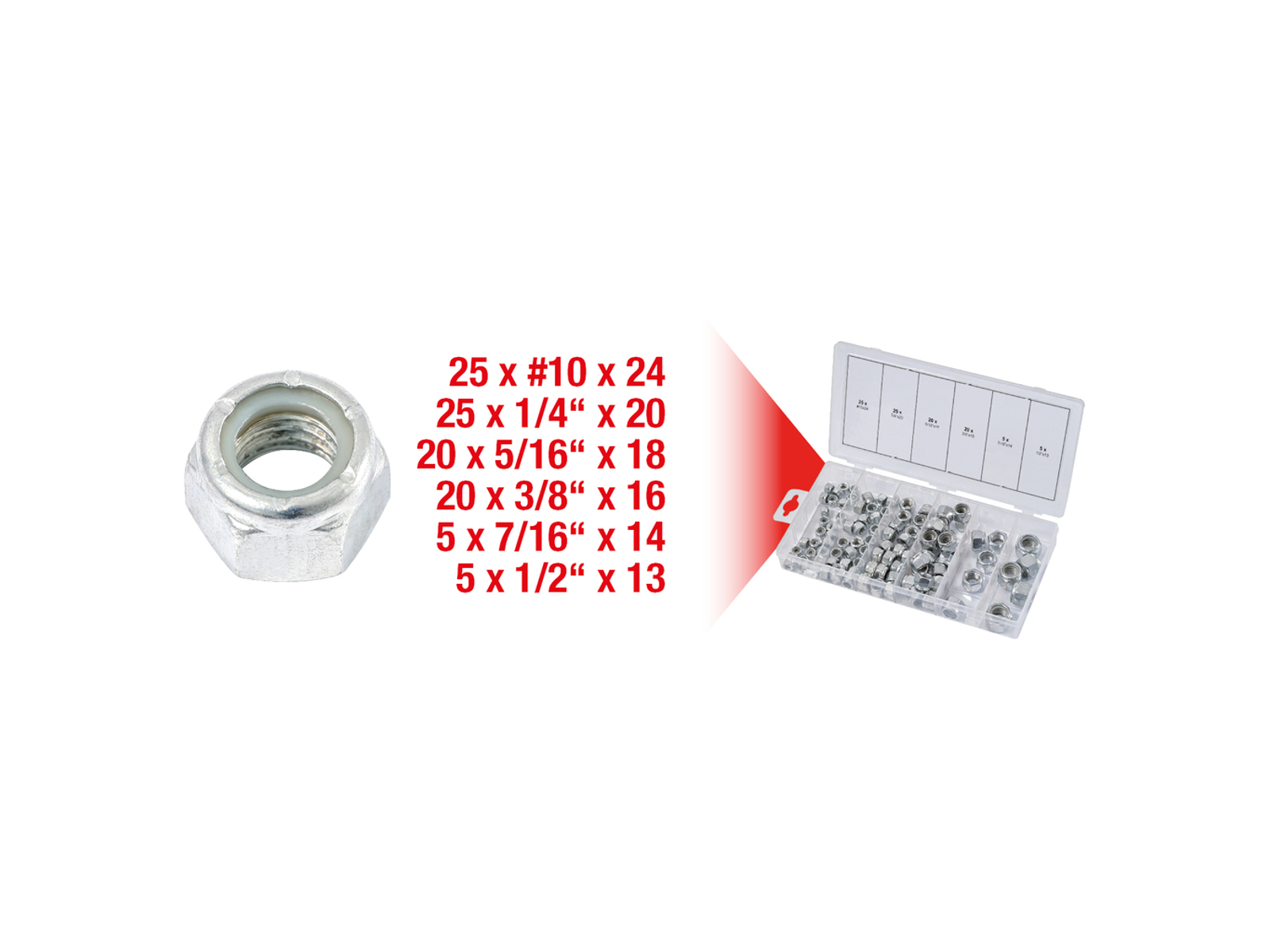 Sortiment af møtrikker, selvlåsende, UNC 100 dele