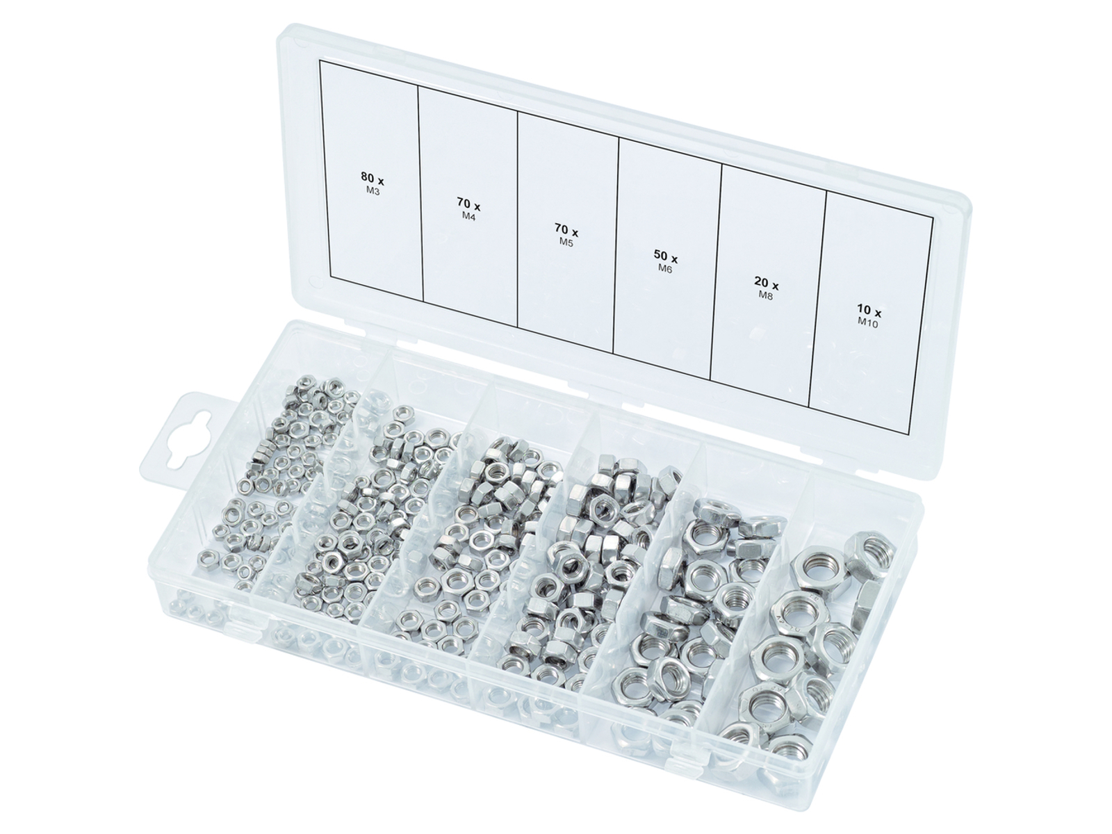 Sortiment af RUSTFRI STÅL-møtrikker, metrisk, 300 dele