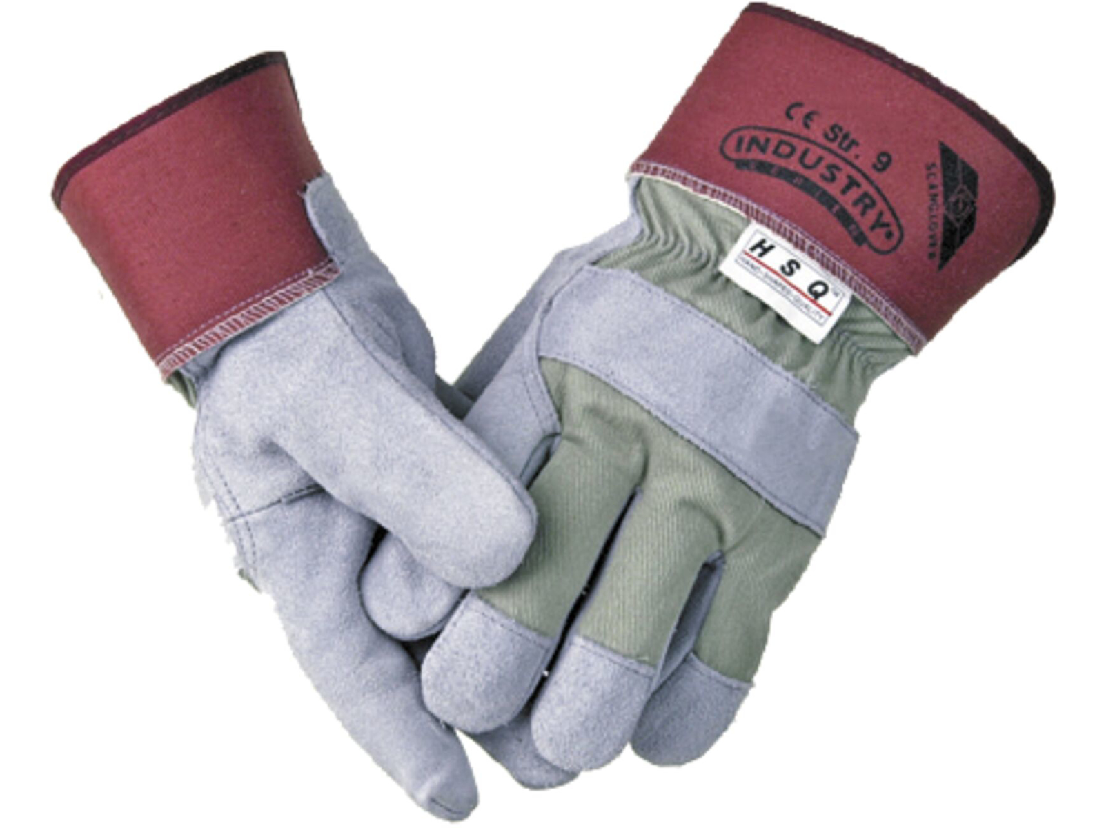 Arbejdshandske af chromgarvet oksespalt med stofoverhånd, elastik i håndryg og 6 cm krave. Fóret med bomuldsjersey. Populær i flere brancher til håndtering af f.eks. glatte emner.