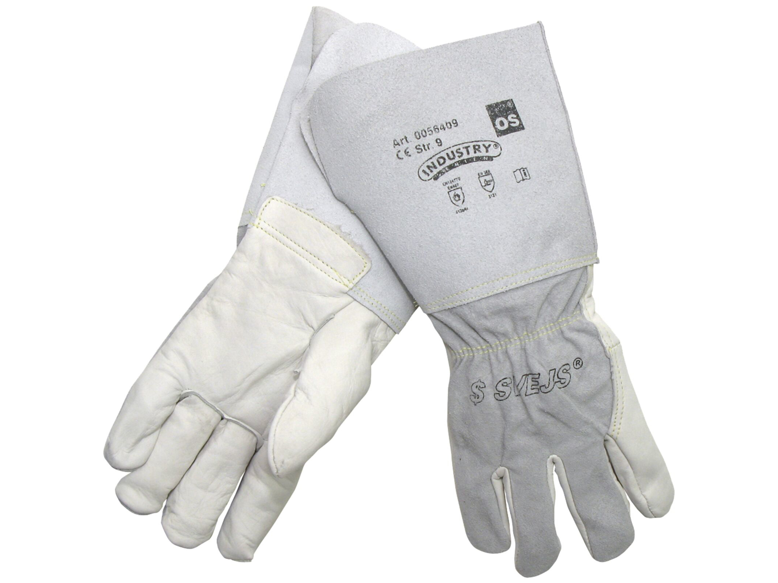 Svejsehandske af chromgarvet oksehud med spaltoverhånd og 14 cm spaltkrave. Fóret med bomuldsjersey. Syet med kevlartråd. Kvalitet: B/C. Kategori II handske testet iht. EN420, EN388, EN407, EN12477. Anvendes til fx CO² samt elektrodesvejsning. Anvendes i mange brancher.