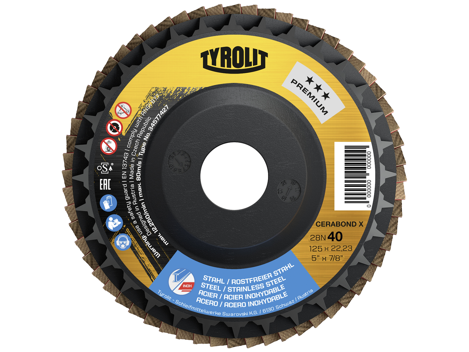 Cerabond X C-Trim lamelslibeskive til stål og rustfrit stål. Velegnet til planslibning, kantslibning og til fjernelse af svejsesøm. Cerabond X keramiske korn sikrer en høj grad af materialefjernelse og egner sig derfor særdeles godt til de mere krævende slibeopgaver. Desuden forhindrer det enestående bindingssystem, at kornene bryder løs for tidligt, hvilket giver produktet en lang levetid. Den ekstra Top-Size-belægning giver mulighed for en koldslibning, hvilket giver skiven en længere levetid og reducerer misfarvninger af arbejdsemnets overflade. Form 28ELN med bærekrop i plast (35 % genanvendt materiale) sørger for optimal udnyttelse af slibelærredet ved en slibevinkel på 0-15°. Bærekroppen kan desuden trimmes for 100 % udnyttelse af skiven.