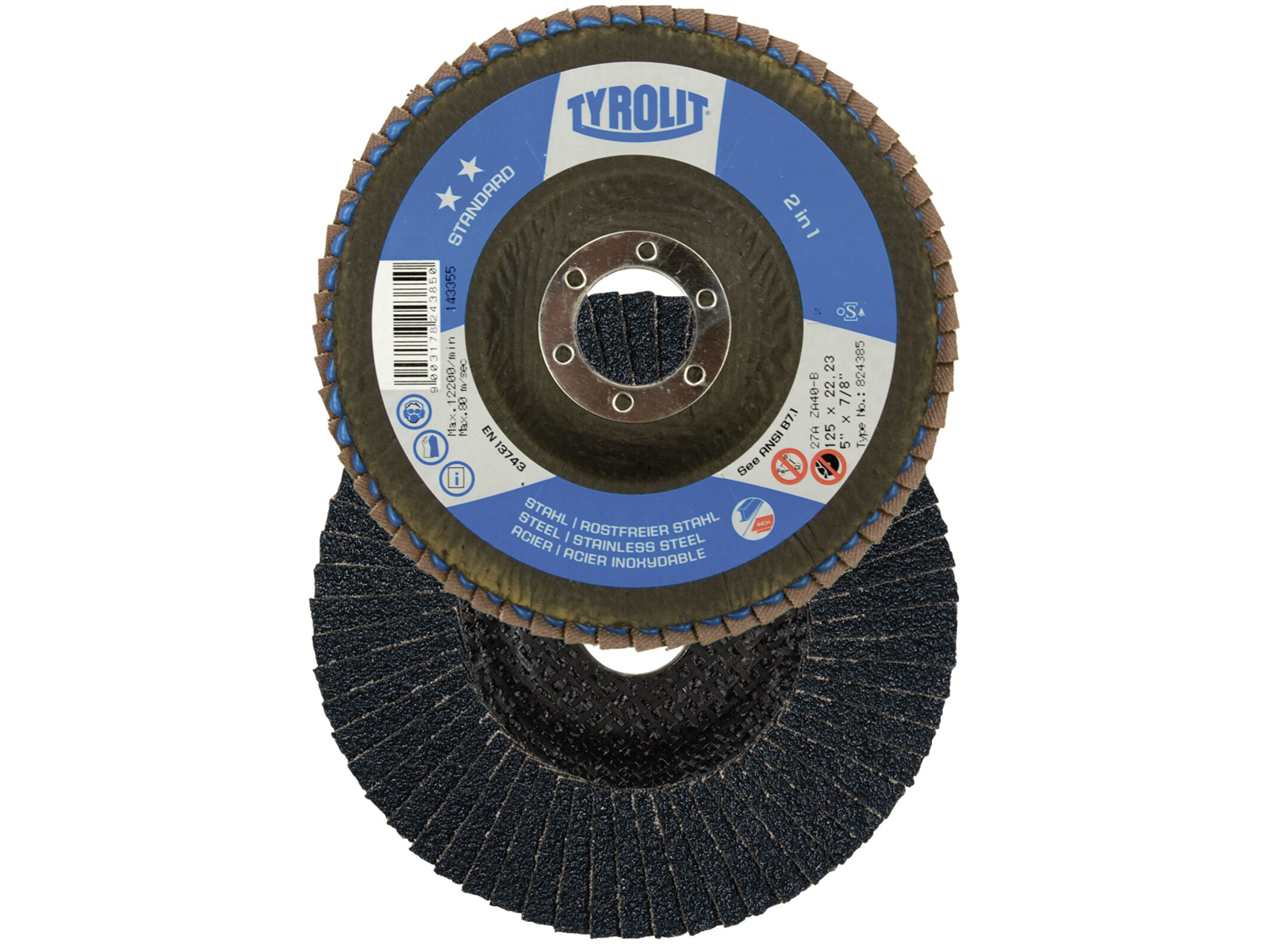 • Standard lamelskive 2IN1 til stål og rustfrit stål, har to fordele. For det første er det produkt med en meget lang levetid, og for det andet er skiven garant for en særdeles god ydelse. 2IN1 lamelskiven bruges både på højlegeret og rustfrit stål og på u- og lavlegeret stål. Standard lamelskiven fås i alle gængse diametre og kornstørrelser. Giver særdeles gode resultater på både stål og rustfrit stål. Nem behandling af svejsesøm samt kant- og overfladeslibning.