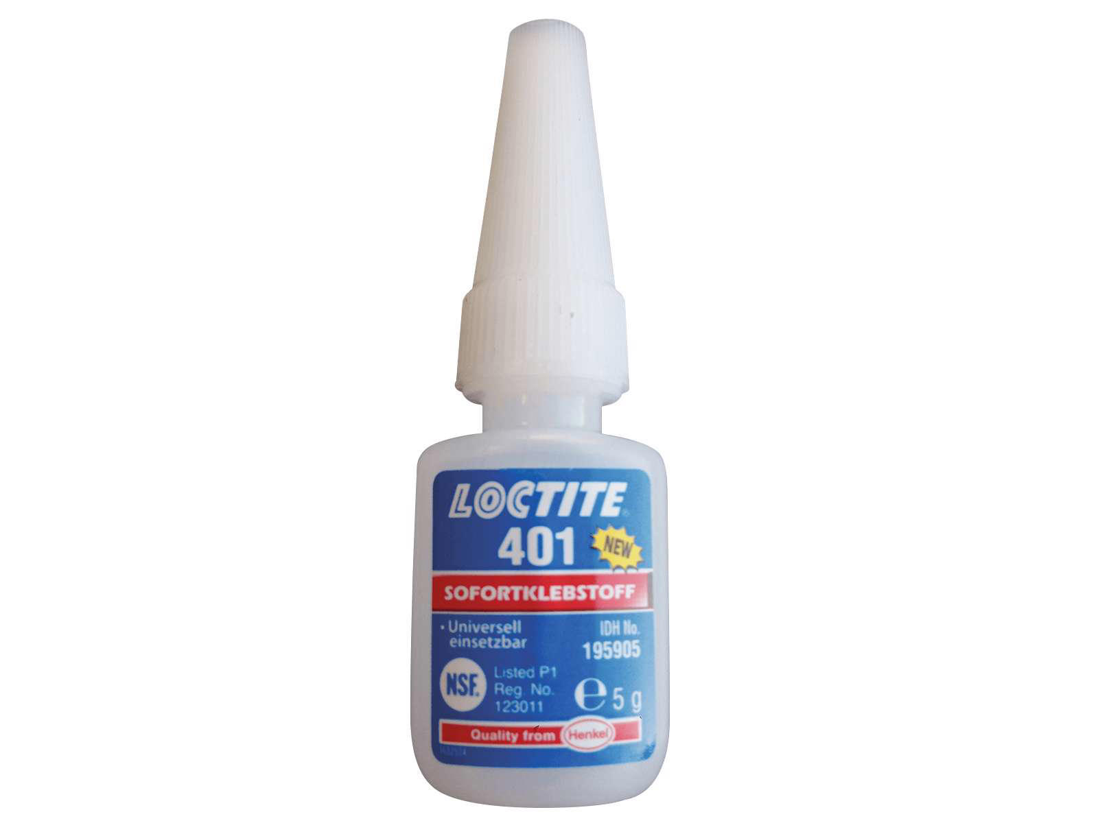 Loctite 401. En farveløs/transparent, universel hurtiglim.