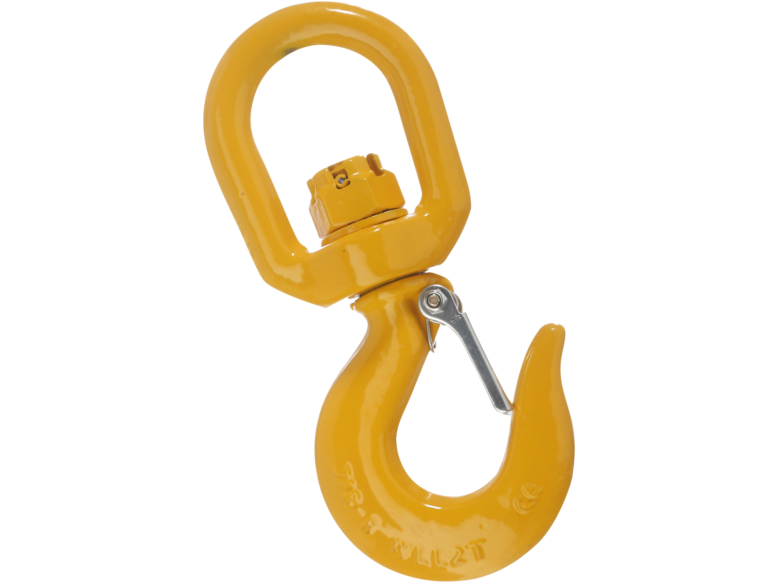 Gulmalet klasse 8 lastekrog med svirvel. Til brug hvor der ønskes mulighed for 360° rotation.