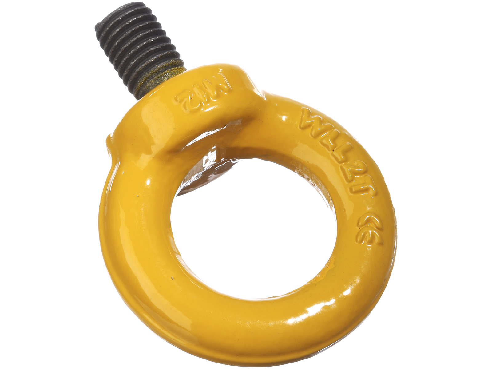 Gulmalet klasse 8 øjebolt. Godkendt til løft. Sikkerhedsfaktor 4:1.