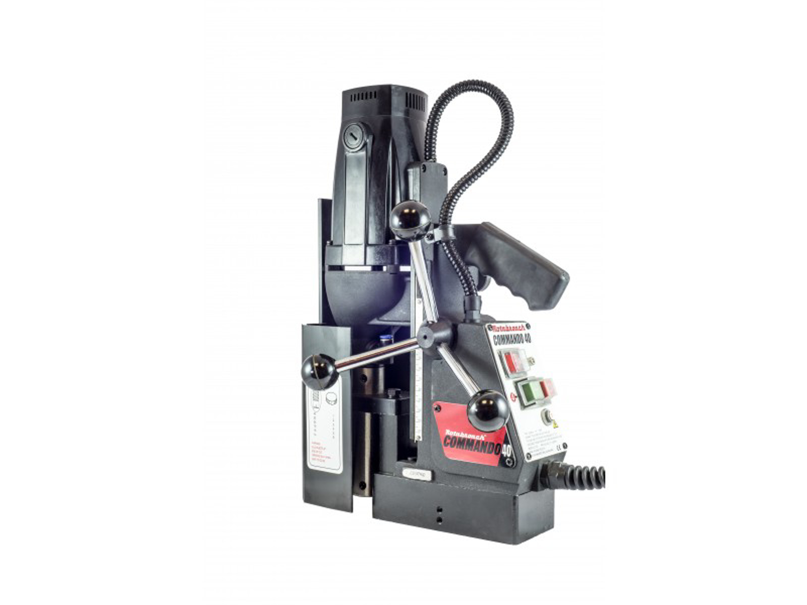 Commando 40 er Rotabroachs mest økonomiske maskine. Med fokus på kvalitet, sikrer du det perfekte snit hver gang. Velegnet til boring op til 40mm i diameter i 50mm dybde. Dybde 265mm med sikkerhedsværn. Sikkerhedsfunktioner Mekanisk kobling / Elektronisk overbelastning/ Sikkerhedsværn Ubelastet omdr./min 270 - 610 omdr./min. Rotabroach Magnetboremaskine Commando 40 , kernebor max. Ø40 mm