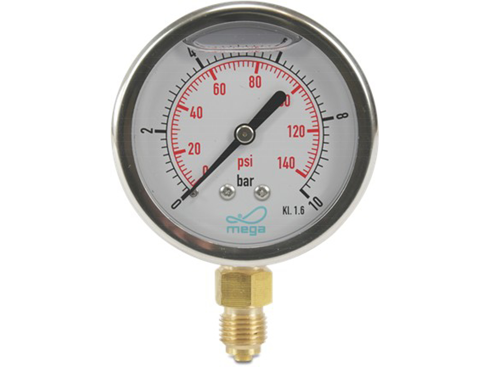 Mega Manometer 63 mm udvendig gevind 0 - 40bar type glycerinfyldt bund tilslutning 1/4"