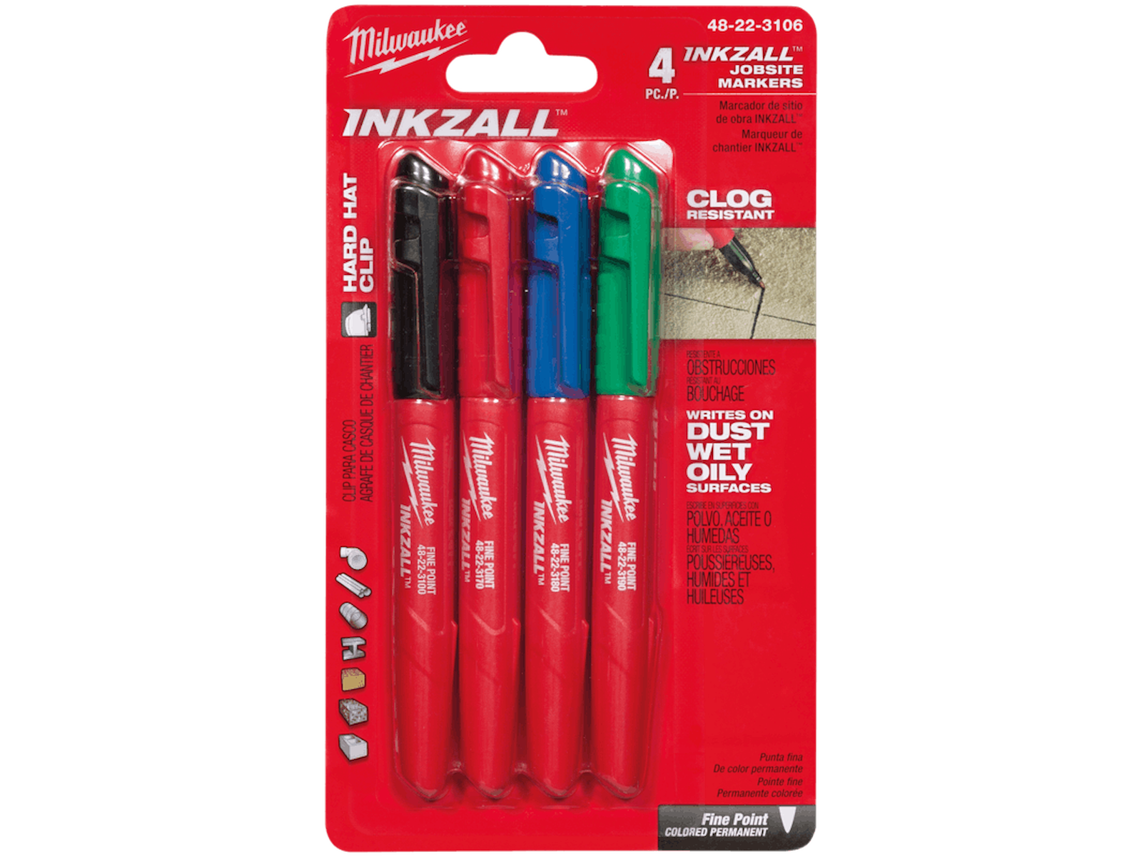 INKZALL marker. Akrylspids forbliver spids og skubbes ikke tilbage under pres. Slidstærk akrylspids som er ideel til rug overflader såsom OSB-plader, beton, træ, krydsfinér, metal og plast. Markeren kan fortsat skrive efter 72 timer uden hætte. Kan bruges på overflader der er våde, fedtede, støvede, rustne eller snavsede. Hurtig tørretid der nedsætter risikoen for udtværing af markeringer på PVC og metaloverflader. Slank design for nem adgang på steder med begrænset plads. Hård hætte med clips som kan sættes fast på kasketten/hjelmen, i bukserne m.m. Hætten er let at åbne og kan åbnes med én hånd. Hul til at fastgøre nøglesnor, fastgør f.eks. markeren til en touchscreen enhed. Skridsikkert design for bedre greb. Fin spids i farverne blå, rød, grøn og sort. 1 mm.